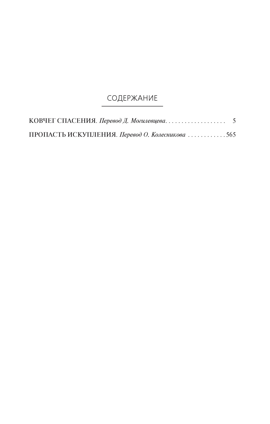 Ковчег спасения. Расширяя свои владения, покоряя все новые звезды, человечество разделилось на соперничающие фракции. В двадцать шестом веке коллективисты сочленители ведут борьбу со сторонниками «демократической анархии». Когда кажется, что победа уже близка, сочленители обнаруживают в космосе приближающийся рой древних мыслящих машин, которые называют себя ингибиторами и считают своей главной задачей уничтожение любого биологического разума. Сочленители не верят, что им удастся выдержать натиск этого нового врага, и намереваются сбежать, подставив все прочие человеческие племена под удар ингибиторов. Лишь один из них, старый воин Клавэйн, предпочитает остаться, чтобы организовать отчаянное сопротивление… Пропасть Искупления. Если во Вселенной появляется новая форма жизни и достигает определенного порога разумности, с ней беспощадно расправляются ингибиторы, древние чистильщики космоса. Сейчас под их ударом оказалось человечество. Спасаясь от армады машин-убийц, тысячи беженцев, возглавляемые ветераном многих войн Клавэйном, основали колонию на планете-океане, которой дали имя Арарат. Но гибель подступила и сюда. И когда уже казалось, что все кончено, ангелом мщения с небес спустилась нежданная гостья - чтобы предать мученической смерти своего обидчика и подарить остальным призрачный шанс.| Издательство | Азбука |