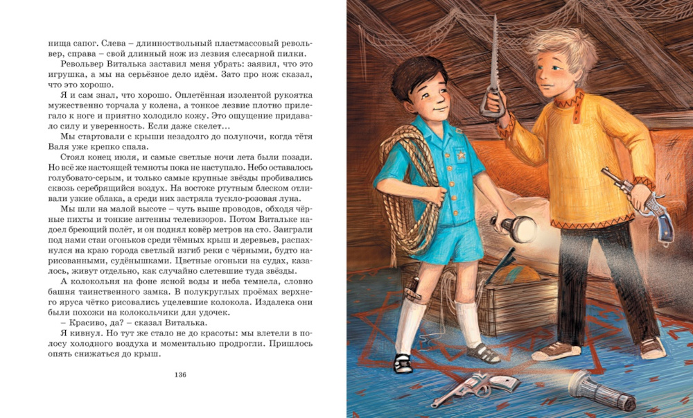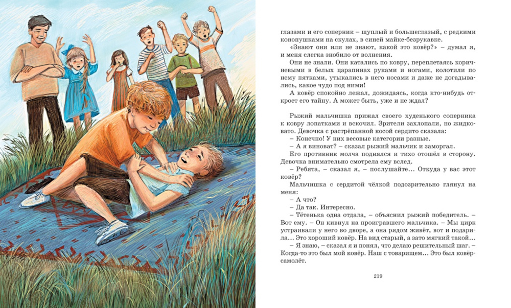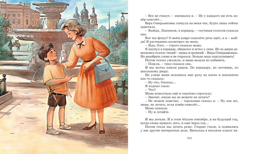 Владислав Петрович Крапивин - замечательный писатель, ещё при жизни ставший классиком, обладатель многочисленных литературных премий и основатель Международной детской литературной премии, носящей его имя. Произведения писателя переведены на многие языки мира, некоторые из них экранизированы, а наиболее полное собрание его сочинений насчитывает 50 томов. В повести «Ковёр-самолёт» писатель словно бы возвращается в прошлое, становясь десятилетним мальчишкой, который вместе со своим закадычным другом бродит по улицам родного города и даже летает над ним на ковре-самолёте. Это сказка о детстве, которая есть у каждого ребёнка. В конце концов, настоящее чудо, которое открывают герои повести, - это вовсе не волшебный ковёр, а их готовность прийти на выручку другим и крепкая дружба, пронесённая через всю жизнь.| Издательство | Махаон |