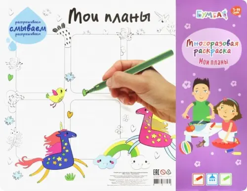 Коврик для творчества - многоразовая раскраска. Мои планы. Единороги