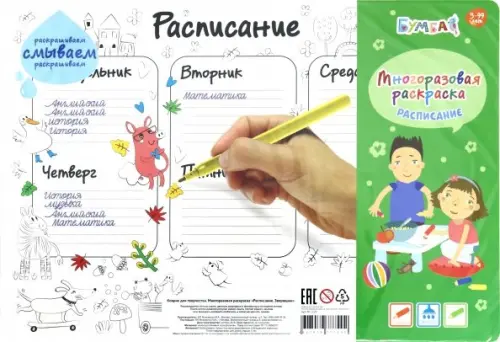 Расписание всегда должно быть у школьника под рукой! Коврик для творчества поможет ребенку всё успевать и делать уроки вовремя. Заполняйте специальные ячейки нужной информацией, а также раскрашивайте веселых зверей. В любой момент краски можно стереть и начать всё заново!