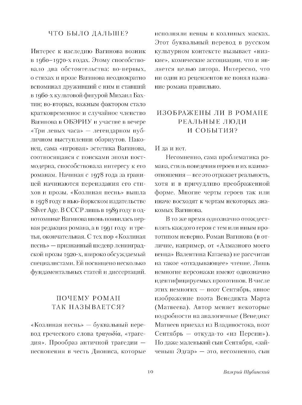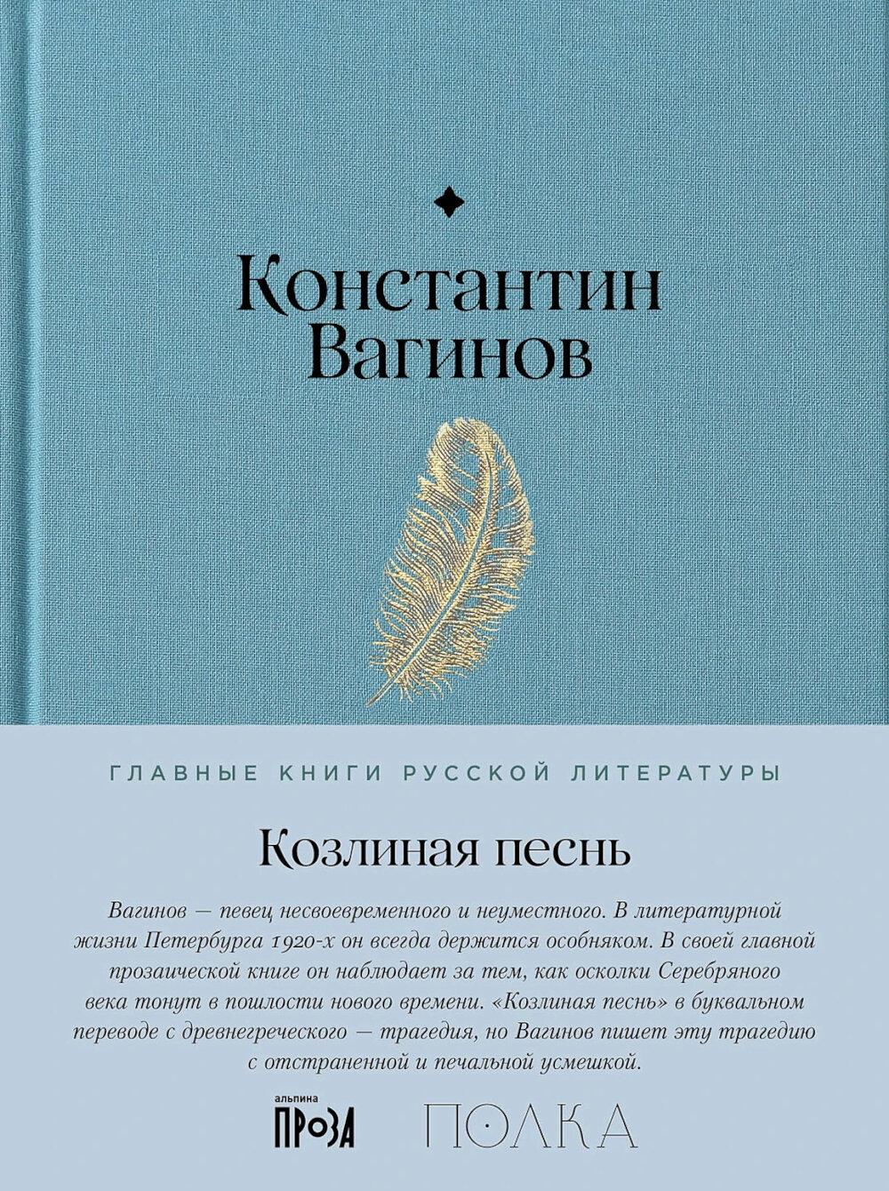 Вагинов - певец несвоевременного и неуместного. В литературной жизни Петербурга 1920-х он всегда держится особняком. В своей главной прозаической книге он наблюдает за тем, как осколки Серебряного века тонут в пошлости нового времени. «Козлиная песнь» в буквальном переводе с древнегреческого - трагедия, но Вагинов пишет эту трагедию с отстраненной и печальной усмешкой.