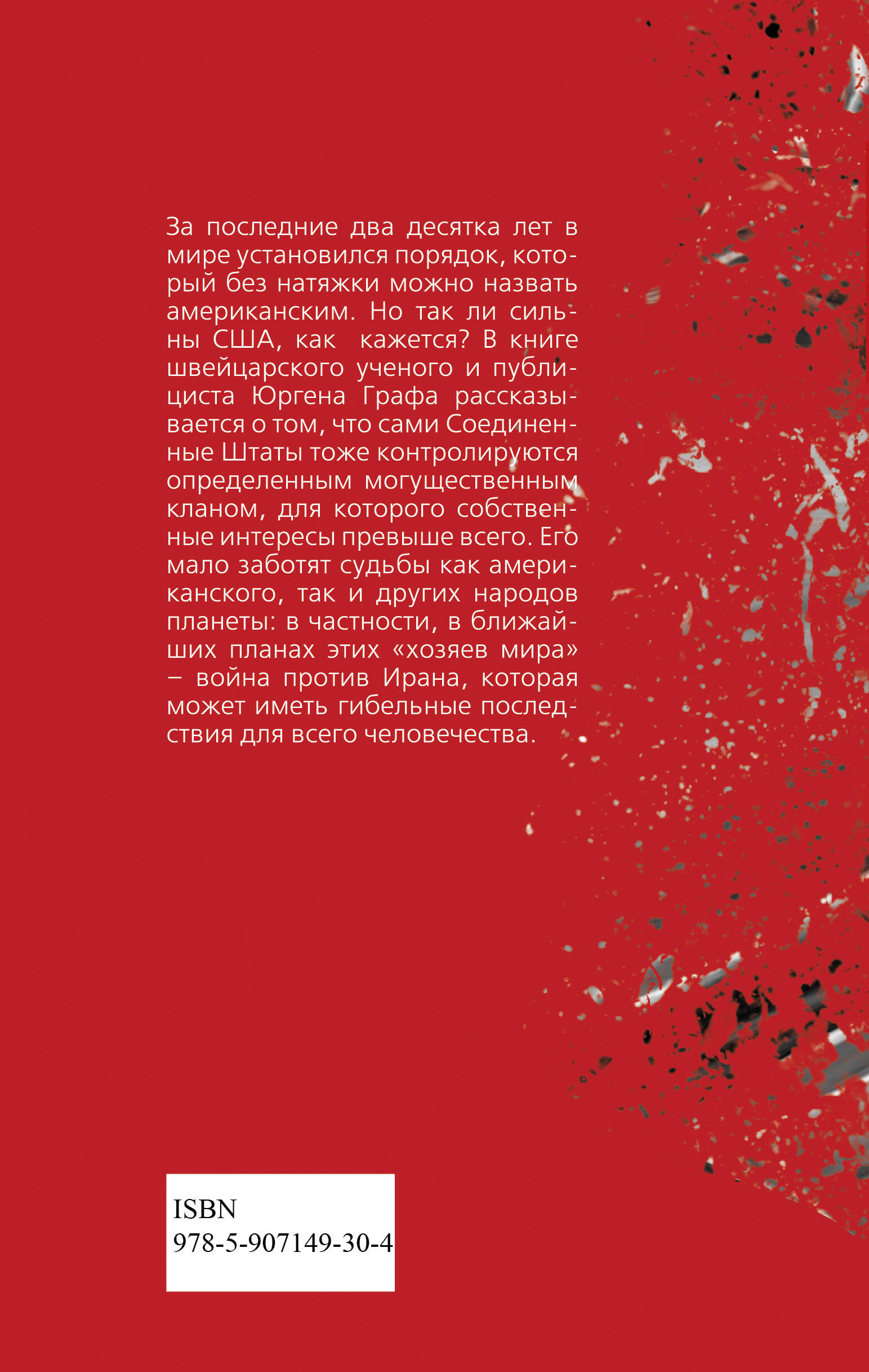 За последние два десятка лет в мире установился порядок, который без натяжки можно назвать американским. Но так ли сильны США, как кажется? В книге швейцарского ученого и публициста Юргена Графа рассказывается о том, что сами Соединенные Штаты тоже контролируются определенным могущественным кланом, для которого собственные интересы превыше всего. Его мало заботят судьбы как американского, так и других народов планеты: в частности, в ближайших планах этих "хозяев мира" - война против Ирана, которая может иметь гибельные последствия для всего мира.