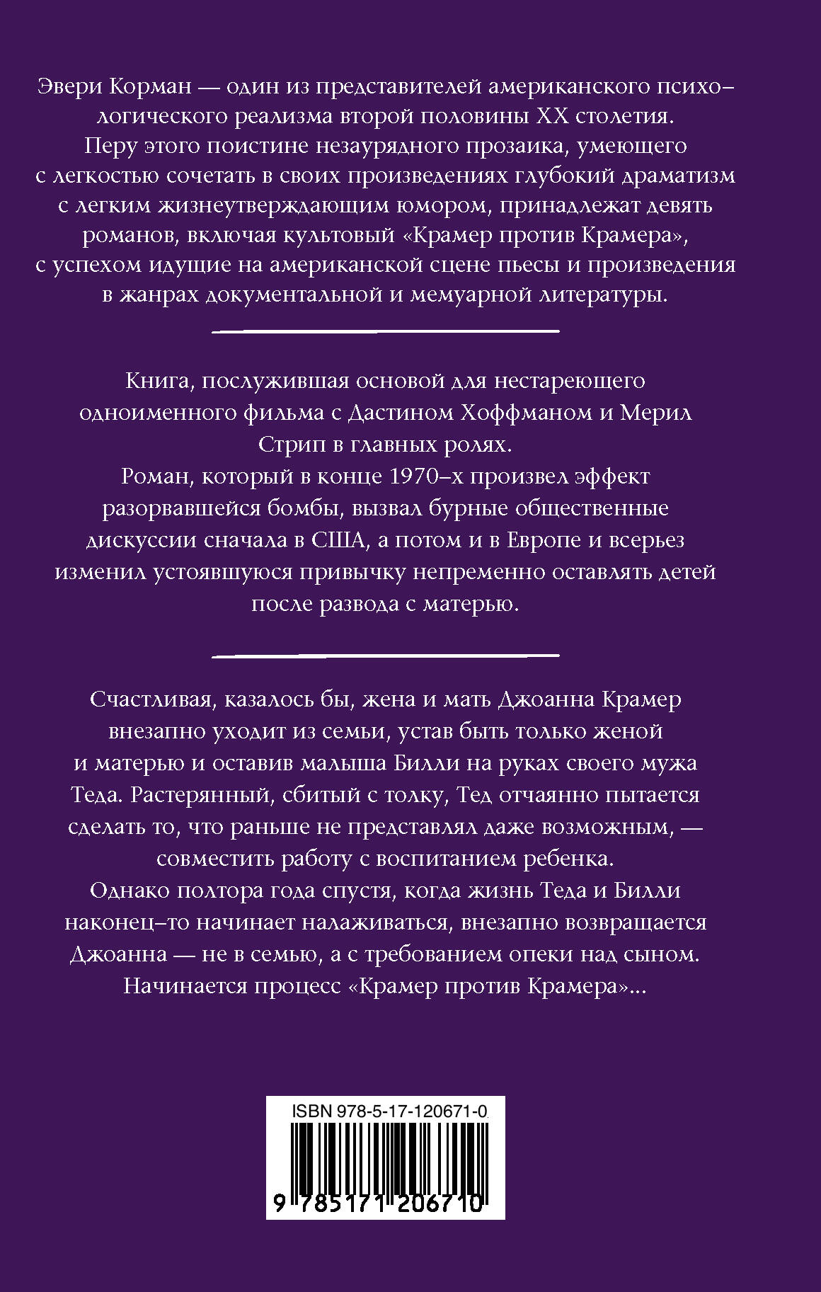 Международный бестселлер, переведённый более чем на 50 языков. Литературная основа одноимённого оскароносного фильма с Дастином Хоффманом и Мэрил Стрип в главных ролях. Трогательная и незабываемая история любви, привязанности и развода.