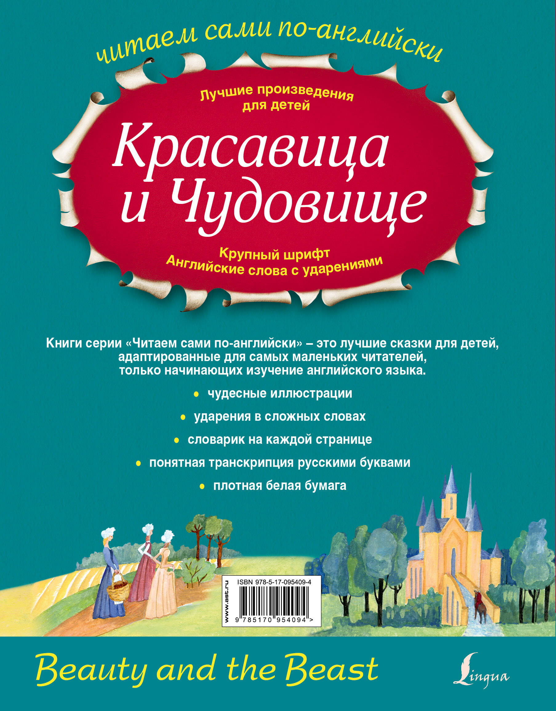 Серия «Читаем сами по-английски» предназначена для самых маленьких читателей, только начинающих изучение английского языка. В книгу вошел адаптированный текст всемирно известной сказки «Красавица и Чудовище». - Краткий словарик на каждой странице. - Ударения в сложных словах. - Чудесные иллюстрации. - Крупный шрифт. - Транскрипция русскими буквами. - Плотная белая бумага.| Издательство | ИЗДАТЕЛЬСТВО "АСТ" |