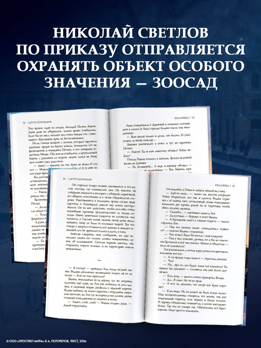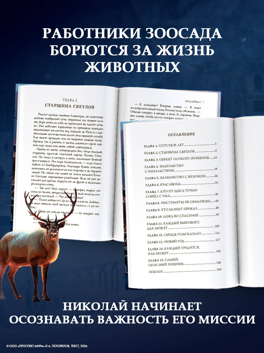 Блокадный Ленинград, суровая зима 1941-го. Старшина Николай Светлов после тяжёлой контузии выписывается из госпиталя в надежде вернуться на фронт, но по приказу коменданта отправляется охранять объект особого значения - зоосад. Ежедневно работники зоосада самоотверженно борются за жизнь животных, всеми силами стараясь прокормить их. Николай, поначалу не принимающий решение коменданта, постепенно начинает осознавать, насколько важна его миссия. Забота о бегемотихе Красавице и других подопечных зоопарка становится смыслом его жизни.| Издательство | Издательство "АСТ" |