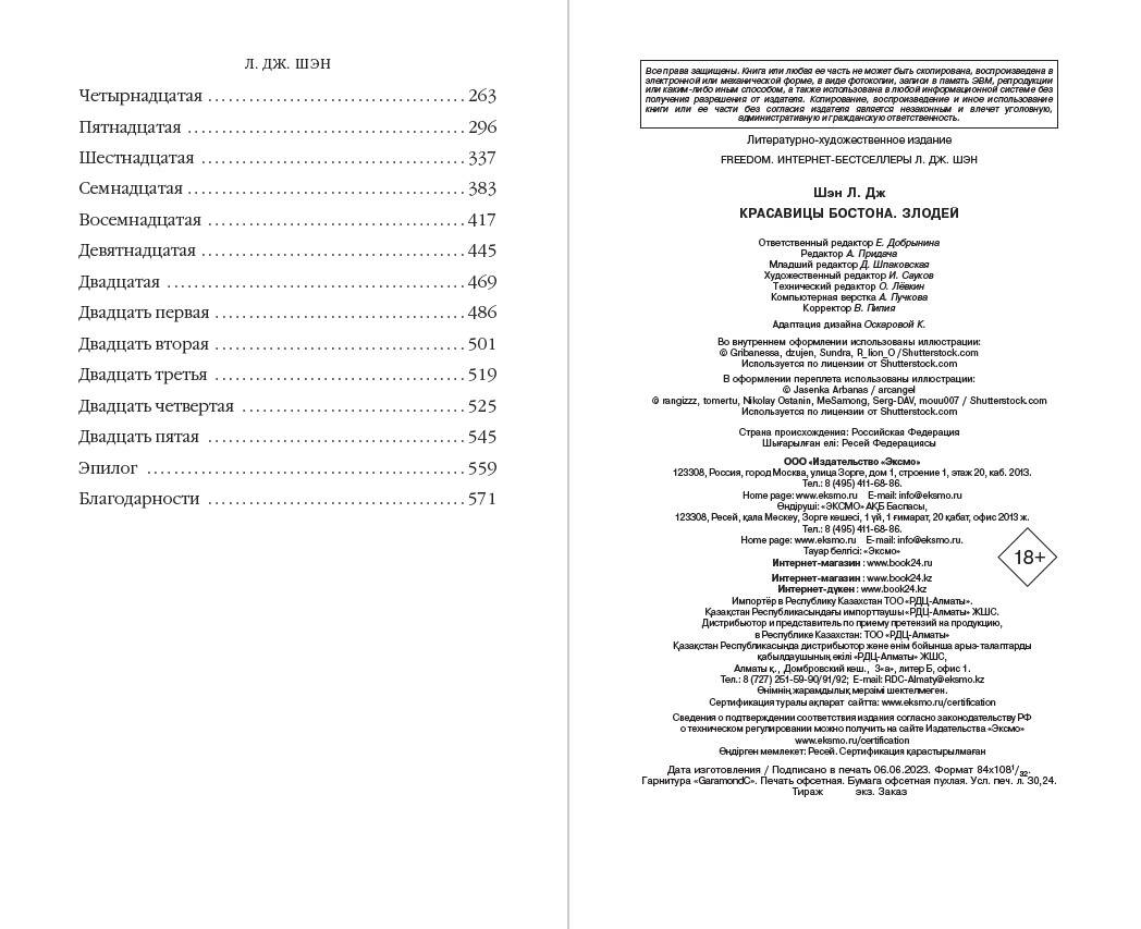 Новая история о бэдбое, который не знает, что такое чувства. Смогут ли отношения, где двое используют друг друга, перерасти в нечто большее? От автора бестселлеров USA Today, Amazon и Washington Post Л. Дж. Шэн! Киллиан всегда нравился Персефоне, но это было безответно. Судьба распорядилась так, что эти двое теперь должны пожениться. Проснутся ли в Киллиане чувства или их брак останется холодным расчетом? №1 бестселлер в Kindle Store Amazon! ДЛЯ ВСЕГО МИРА ОН ЗЛОДЕЙ. ДЛЯ НЕЕ - РЫЦАРЬ В СИЯЮЩИХ ДОСПЕХАХ. Жестокий. Хладнокровный. Аид в дорогом костюме. Киллиана Фицпатрика связывают со всеми пороками на планете Земля. А для меня он - мужчина, который спас мою жизнь. Теперь я хочу, чтобы он оказал еще одну малюсенькую услугу. Вызволил из неприятностей, в которые меня втянул мой муж. Ну что такое, в конце концов, сто тысяч долларов для одного из самых богатых людей в Америке? Правда, оказалось, что Киллиан не работает бесплатно. Цена - моя свобода. Теперь я - игрушка в его руках, с которой можно делать все, что угодно. Но Киллиан забыл, что Персефона была не только богиней весны, но и королевой смерти. Скоро он узнает, что самый опасный яд… это еще и самый сладкий. «Я однозначно и бесповоротно по уши влюблена в Киллиана Фитцпатрика. Наполненный фирменным остроумием Шэн, трепетом и эмоциональной окраской, "Злодей" - пронзительная история о принятии, настойчивости и любви». - Хелена Хантинг, автор бестселлеров New York Times и USA Today| Издательство | ООО "Издательство "Эксмо" |