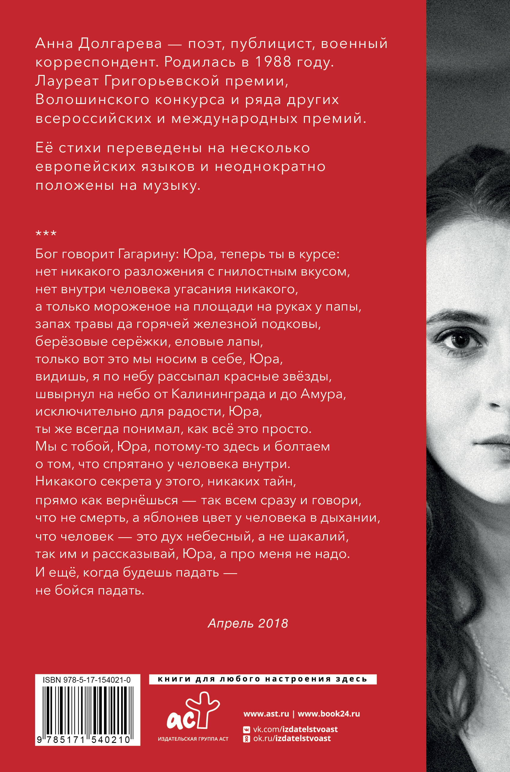Сборник «Красная ягода. Черная земля» наполнен проникновенной и живой лирикой - гражданской, философской и предельно автобиографичной, отражающей мысли, надежды и чаяния как самого автора, так и его читателей разных поколений. Стихотворения Анны поднимают важные общечеловеческие вопросы: о жизни и смерти, о вере и гуманизме, о красоте человека и его родной земли, о том, что держит каждого на плаву в самые трудные и мрачные моменты. Анна Долгарева - лауреат Григорьевской премии и премии им. А.И. Левитова, победительница фестиваля молодой поэзии им. Леонида Филатова «Филатов Фест» и др. престижных международных наград. Предисловие к книге написано известным поэтом, прозаиком, эссеистом и радио-телеведущим Дмитрием Борисович Воденниковым.| Издательство | ИЗДАТЕЛЬСТВО "АСТ" |