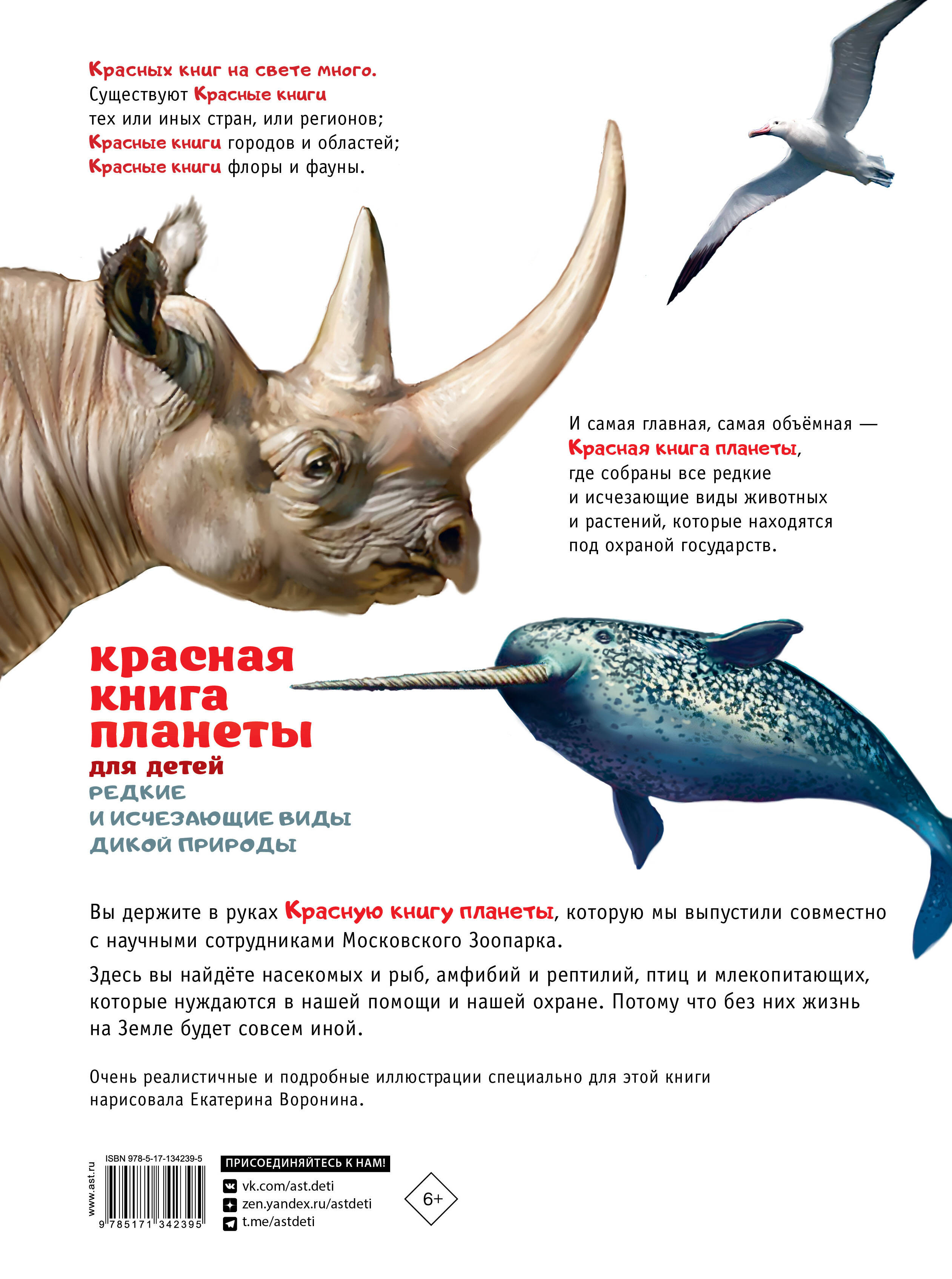 Красная книга - это список редких и исчезающих представителей флоры и фауны планеты. Здесь мы при участии научных сотрудников Московского Зоопарка собрали самых интересных и необычных животных, которые находятся под особой охраной. Вы узнаете, где они живут, как выглядят, какой образ жизни ведут и почему исчезают. Но главное - что мы можем сделать, чтобы сохранить каждого представителя фауны и нашу планету в целом. Книга будет интересна взрослым и детям, учителям и школьникам. А подробные иллюстрации делают её особенно увлекательной.| Издательство | ИЗДАТЕЛЬСТВО "АСТ" |