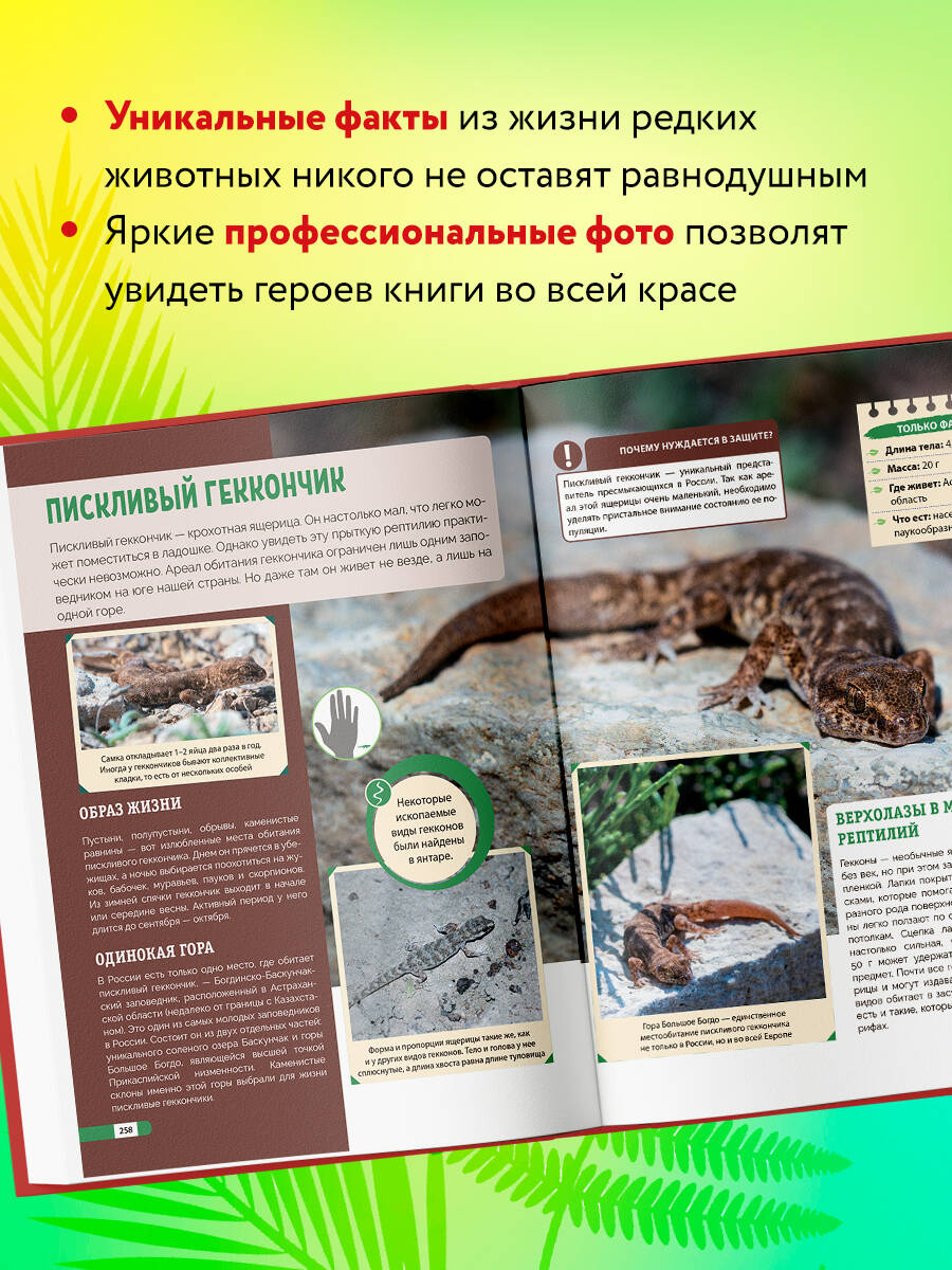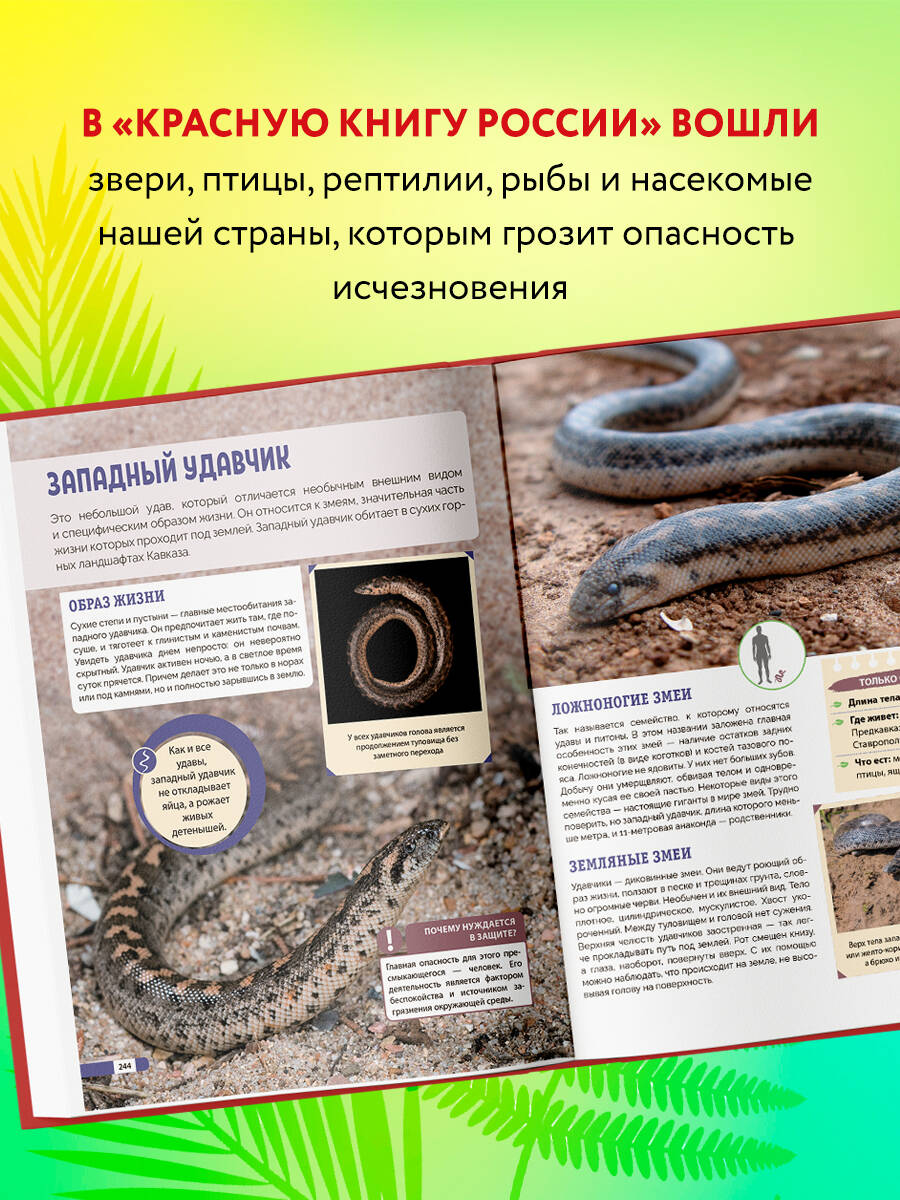 В «Красной книге России» собраны редкие звери, птицы, рептилии, амфибии, рыбы и насекомые, живущие на территории нашей страны, которым грозит опасность исчезновения. С кем-то вы знакомы, с кем-то встретитесь впервые. Уникальные иллюстрации, важная информация, расположение по видам - «Красная книга» очень удобна в использовании. Новое издание хорошо адаптировано для детей и станет неотъемлемой частью вашего досуга на природе и дома, в поездке и в общении с ребенком. «Красная книга» поможет лучше сориентироваться в мире тех, кто нуждается в заботе со стороны человека. Вы узнаете: - какой образ жизни ведет черный гриф; - почему прыгают киты; - как танцует японский журавль; - зачем жабе мешок. И многое другое!| Издательство | ООО "Издательство "Эксмо" |