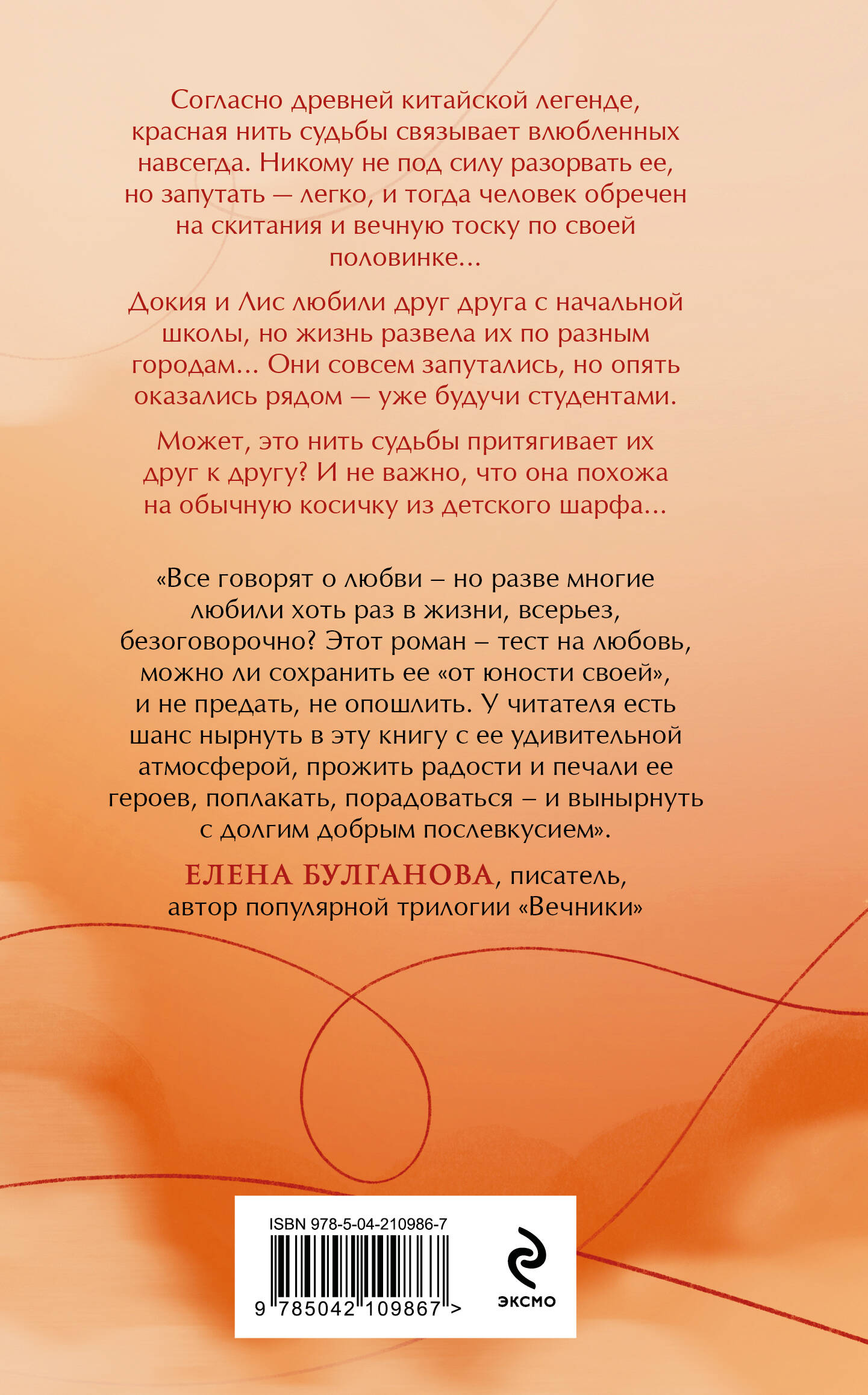 Может ли первая любовь стать судьбой? История Лиса и Докии утверждает: да! Невероятно трогательный роман, полный щемящей нежности, напомнит: вы тоже связаны с кем-то красной нитью… Она может запутаться, но оборваться - никогда. «Все говорят о любви - но разве многие любили хоть раз в жизни, всерьез, безоговорочно? Этот роман - тест на любовь, можно ли сохранить ее «от юности своей» и не предать, не опошлить. У читателя есть шанс нырнуть в эту книгу с ее удивительной атмосферой, прожить радости и печали ее героев, поплакать, порадоваться - и вынырнуть с долгим добрым послевкусием». - Елена Булганова, писатель, автор популярной трилогии «Вечники» «Эта книга заставила меня плакать и смеяться одновременно. История любви, описанная так проникновенно, что почувствуешь себя частью этого мира. Герои живые, они стоят рядом, и каждый поворот сюжет затягивает всё глубже. Если вы ищете роман, который тронет ваше сердце и останется в памяти надолго, то эта книга именно для вас!» - Мария Евсеева, лауреат премии «Новая детская книга»
