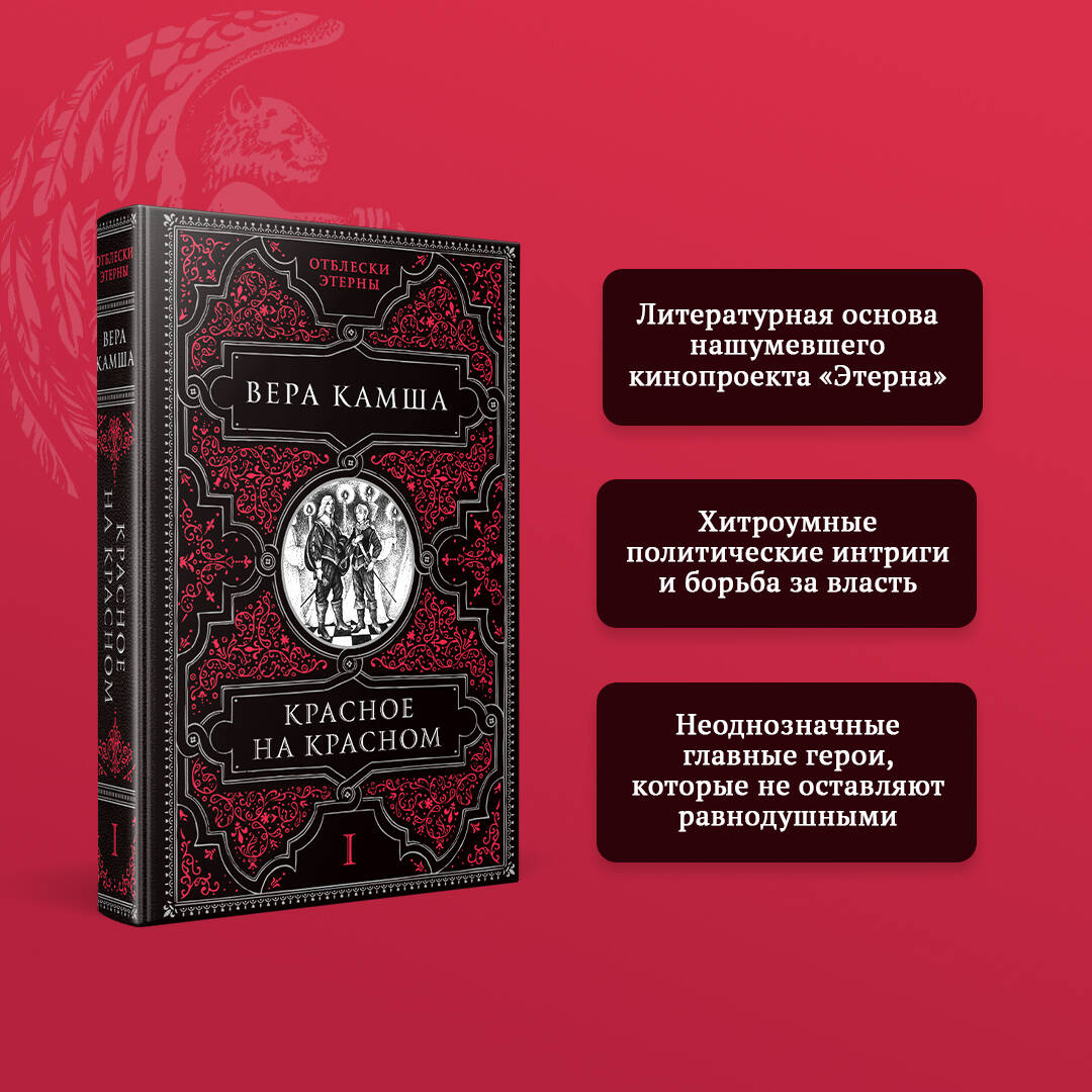 «Красное на красном» - литературный первоисточник кино-адаптации цикла фэнтези-романов Веры Камши «Отблески Этерны». Первая серия экранизации уже вышла и получила емкое название «Этерна. Часть первая». «Отблески Этерны» называют «лучшим образчиком исторического фэнтези на всем постсоветском пространстве». По масштабу, цикл может посоревноваться с романами Александра Дюма и Генрика Сенкевича.| Издательство | ООО "Издательство "Эксмо" |