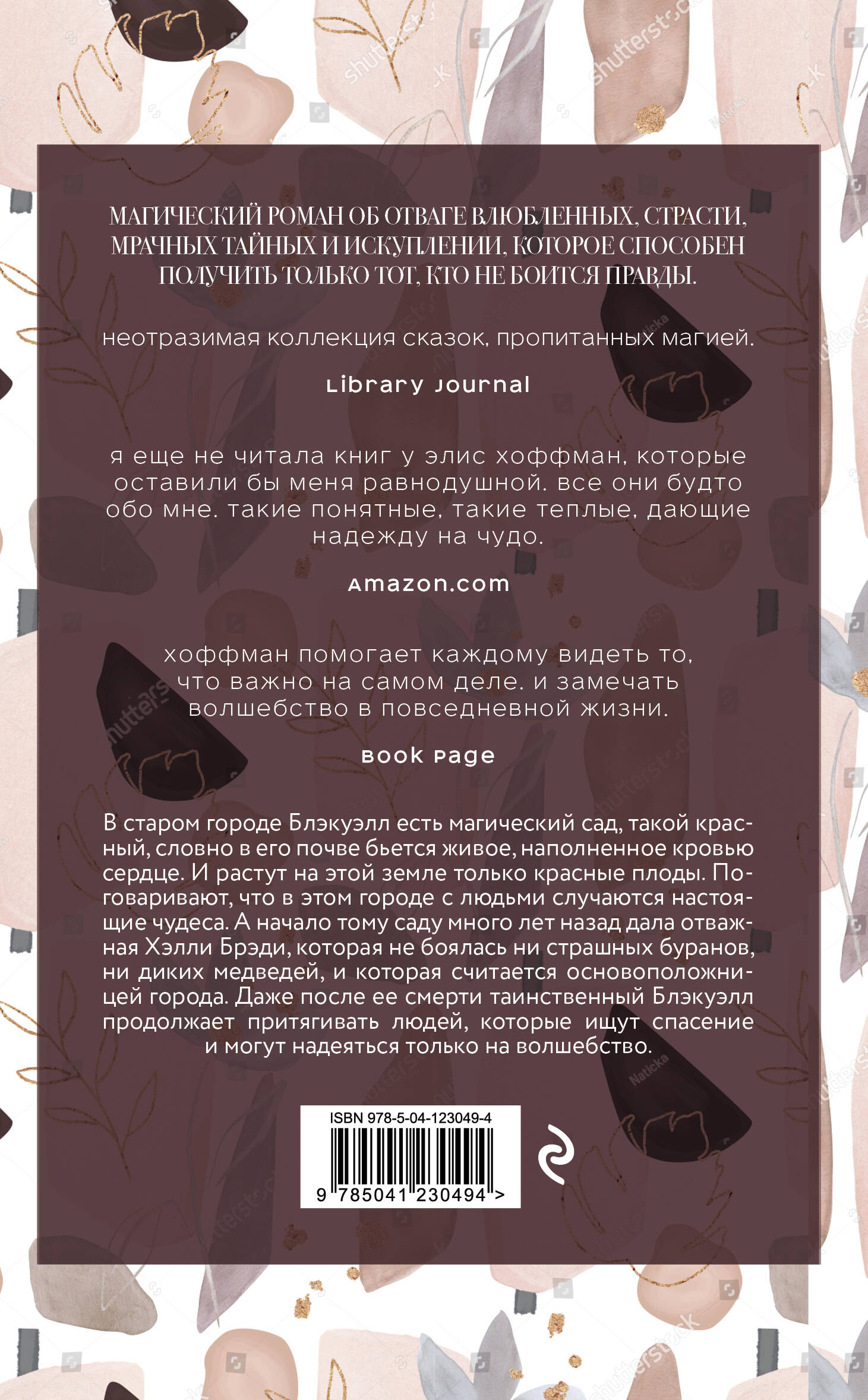 Новое издание волшебного романа знаменитой писательницы Элис Хоффман о загадочном и прекрасном месте силы. В старом городе Блэкуэлл есть магический сад, такой красный, словно в его почве бьется живое, наполненное кровью сердце. И растут на этой земле только красные плоды. Поговаривают, что в этом городе с людьми случаются настоящие чудеса. А начало тому саду много лет назад дала отважная Хэлли Брэди, которая не боялась ни страшных буранов, ни диких медведей, и которая считается основоположницей города. Даже после ее смерти таинственный Блэкуэлл продолжает притягивать людей, которые ищут спасение и могут надеяться только на волшебство.| Издательство | ООО "Издательство "Эксмо" |