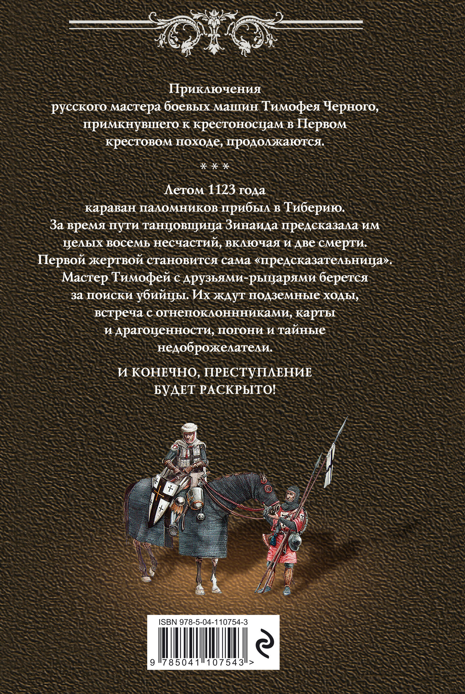 Приключения русского мастера боевых машин Тимофея Черного, примкнувшего к крестоносцам в Первом крестовом походе, продолжаются. Летом 1123 года караван паломников прибыл в Тиберию. За время пути танцовщица Зинаида предсказала им целых восемь несчастий, включая и две смерти. Первой жертвой становится сама «предсказательница». Мастер Тимофей с друзьями-рыцарями берется за поиски убийцы. Их ждут подземные ходы, встреча с огнепоклоннниками, карты и драгоценности, погони и тайные недоброжелатели. И, конечно, преступление будет раскрыто! Второй роман из цикла приключений и расследований Тимофея Черного! Уникальный мир на грани исторического романа и экшн!| Издательство | ООО "Издательство "Эксмо" |