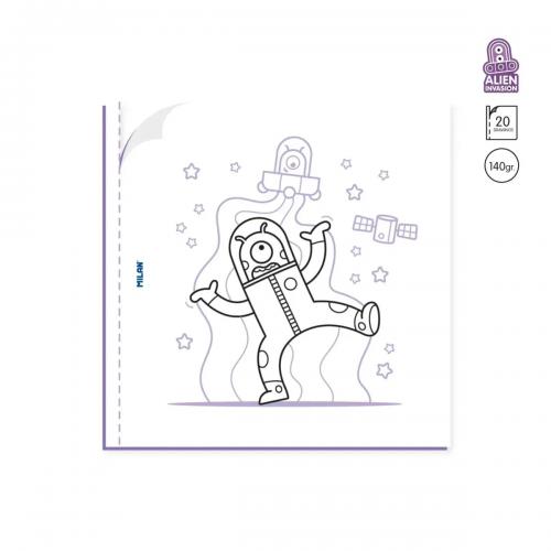 20 citplanētiešu, zvaigžņu, planētu un kosmosa kuģu zīmējumi, lai iztēlotos ceļojumu kosmosā. Krāsojamās grāmatas veicina bērnu radošās spējas un iztēli, kā arī palīdz attīstīt koordināciju, smalko motoriku un koncentrēšanās spējas. Ieteicams no 4 gadu vecuma. Izmēri: 21 x 21 cm. 140 g papīrs no ilgtspējīgām plantācijām, mikroperforēts