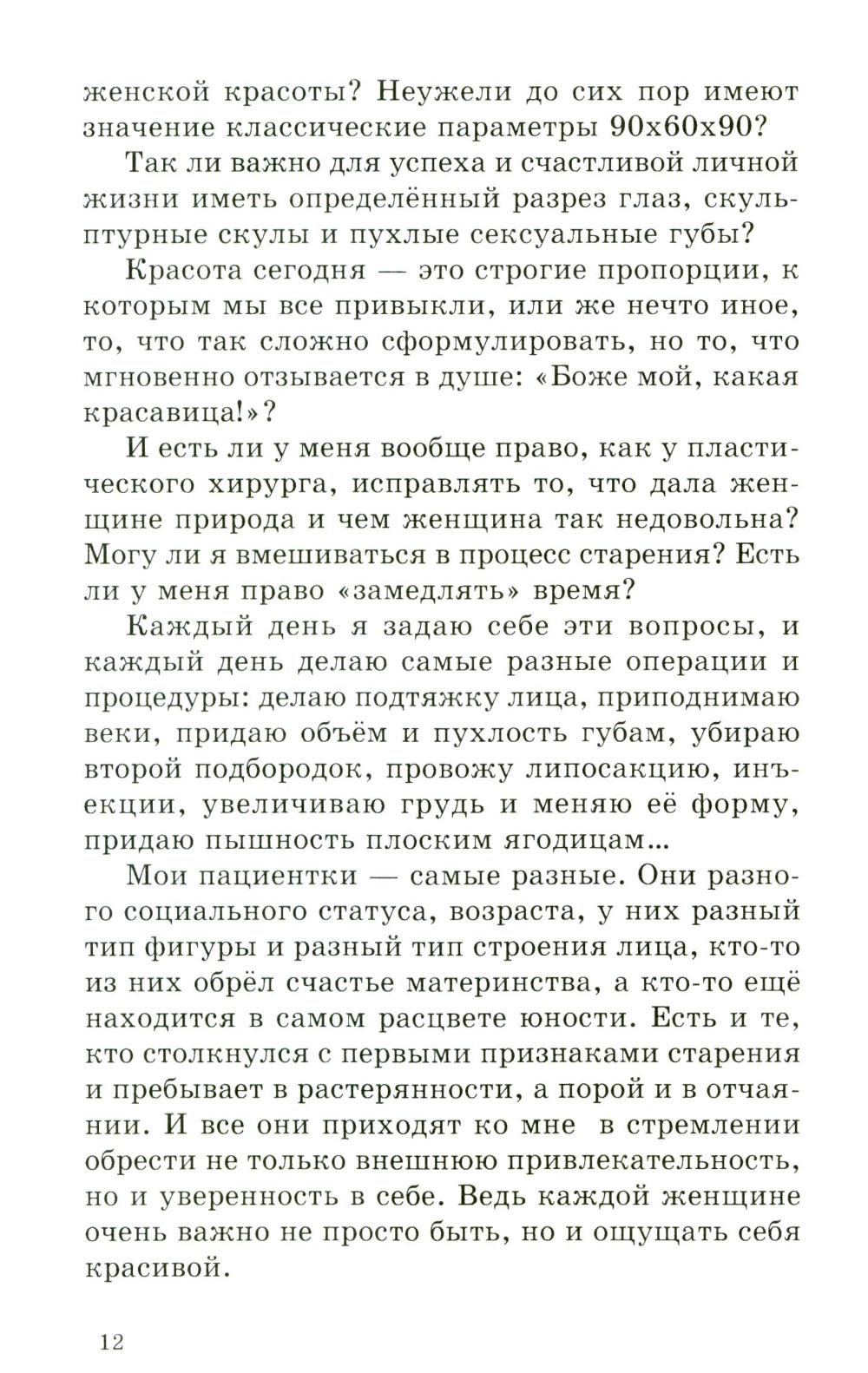 Мы все хотим замедлить время, мы все хотим быть уверенными в себе, хотим оставаться молодыми, привлекательными и желанными, мы все ищем волшебства. А что если волшебство - рядом, и оно вполне реально и осуществимо. Автор этой удивительной книги - блестящий специалист - расскажет нам о современных методах в пластической хирургии и косметологии. О том, как важно слышать и понимать индивидуальность каждой женщины и, сохраняя её, устранять недостатки, мешающие нам в повседневной жизни. Пластическая хирургия в его руках становится поистине тем самым волшебством, претворяющим желания в реальность, делающим человека гармоничным и счастливым.| Издательство | Крылов |