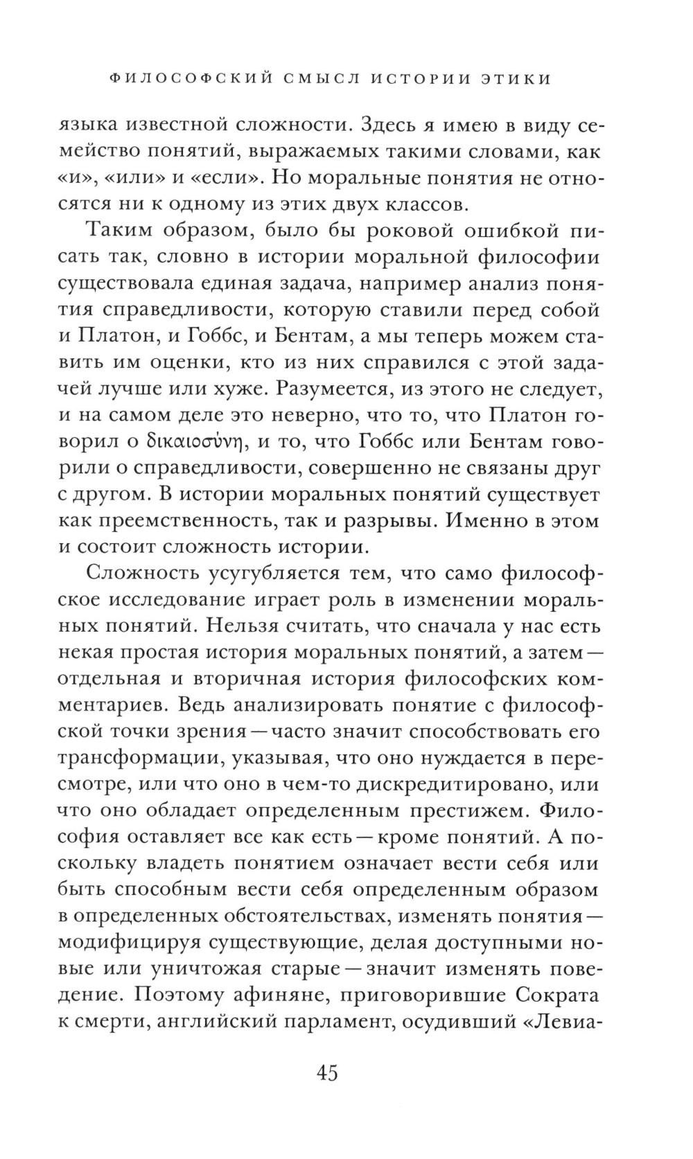 «Краткая история этики» (1966) - фундаментальный труд Аласдера Макинтайра, в котором история моральной философии раскрывается как динамический процесс, неразрывно связанный с изменением форм социальной жизни и общественных идеалов. Макинтайр показывает, что нравственные понятия не являются абстракциями вне времени: они формируются в историческом развитии - от Гомера и становления античной полисной мысли через Средневековье, Новое время и до философии XX века. Автор анализирует основные традиции - греческую добродетель, христианскую этику, протестантскую и просветительскую мысль, выделяя внутренние споры и преемственность идей. Особое внимание уделяется тому, как моральные концепты перемещаются, видоизменяются и иногда теряют свою связь с практикой под влиянием культурных и социальных изменений. Макинтайр подчеркивает, что история этики - это не собрание великих теорий, а живая традиция поиска ответа на вопросы о благе, справедливости и смысловой структуре человеческой жизни. Книга завершает повествование практическим вызовом: перед современным читателем стоит задача критически осмыслить разнообразие морального опыта прошлого, чтобы выработать адекватные ориентиры для настоящего.| Издательство | Изд. Института Гайдара |