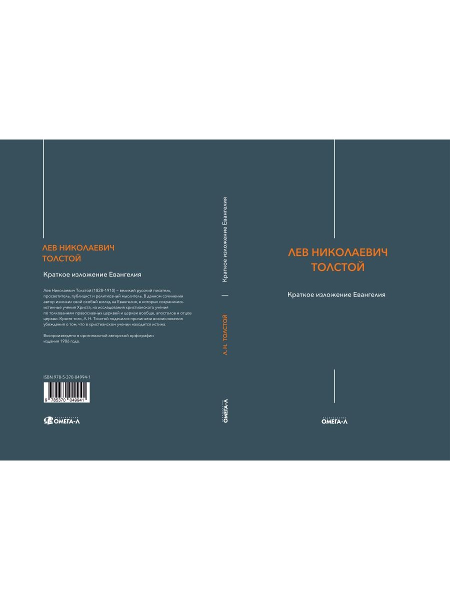 Лев Николаевич Толстой (1828-1910) - великий русский писатель, просветитель, публицист и религиозный мыслитель. В данном сочинении автор изложил свой особый взгляд на Евангелия, в которых сохранились истинные учения Христа, на исследования христианского учения по толкованиям православных церквей и церкви вообще, апостолов и отцов церкви. Кроме того, Л. Н. Толстой поделился причинами возникновения убеждения о том, что в христианском учении находится истина. Воспроизведено в оригинальной авторской орфографии издания 1906 года (М. : Посредник; Обновление, 1906. - 146 с.).| Издательство | Омега-Л |