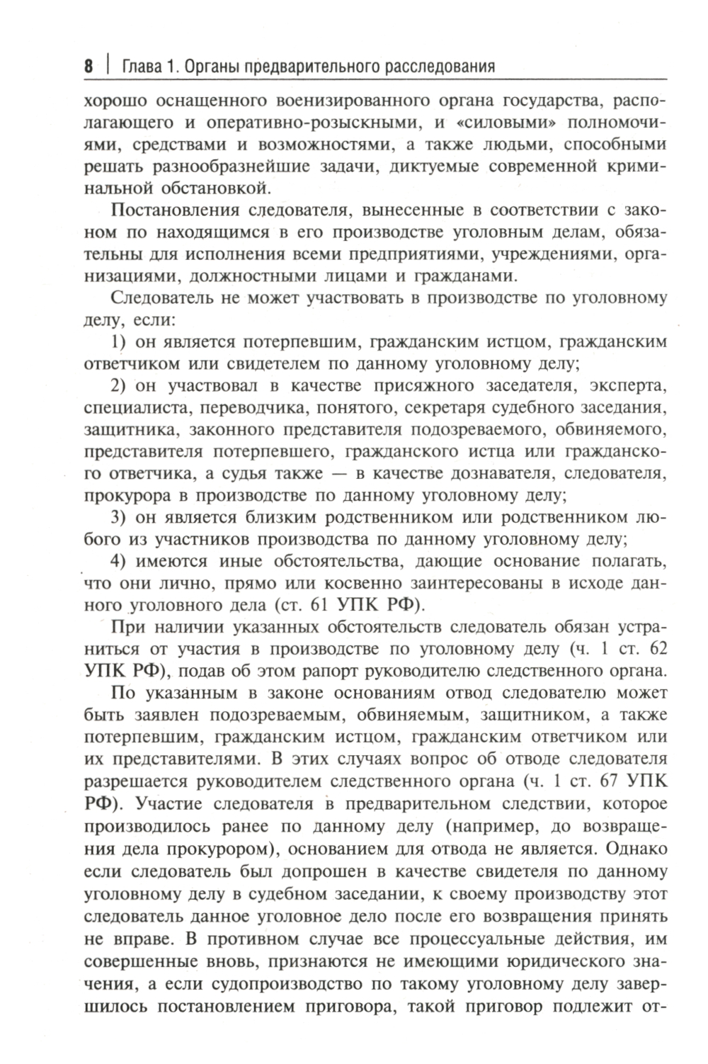 В настоящем издании предельно кратко изложены основы законодательства, теории и практики по вопросам предварительного расследования в российском уголовном судопроизводстве. При этом особое внимание уделяется тому, что в этой области ново, спорно или сложно, неудачно сформулировано в законе или неоднозначно воспринимается и поэтому лишено необходимого единообразия в практическом применении. В виде приложений к авторскому тексту в издание включены два нормативных акта, которые не пользуются широкой известностью, но наряду с Уголовно-процессуальным кодексом используются в досудебной деятельности по уголовным делам. Предназначено для следователей и дознавателей, в первую очередь для тех, кто еще не получил высшего юридического образования или хочет пополнить и освежить свои знания в области постоянно совершенствующегося российского уголовно-процессуального права. Будет интересно и более широкому кругу читателей.| Издательство | Проспект |