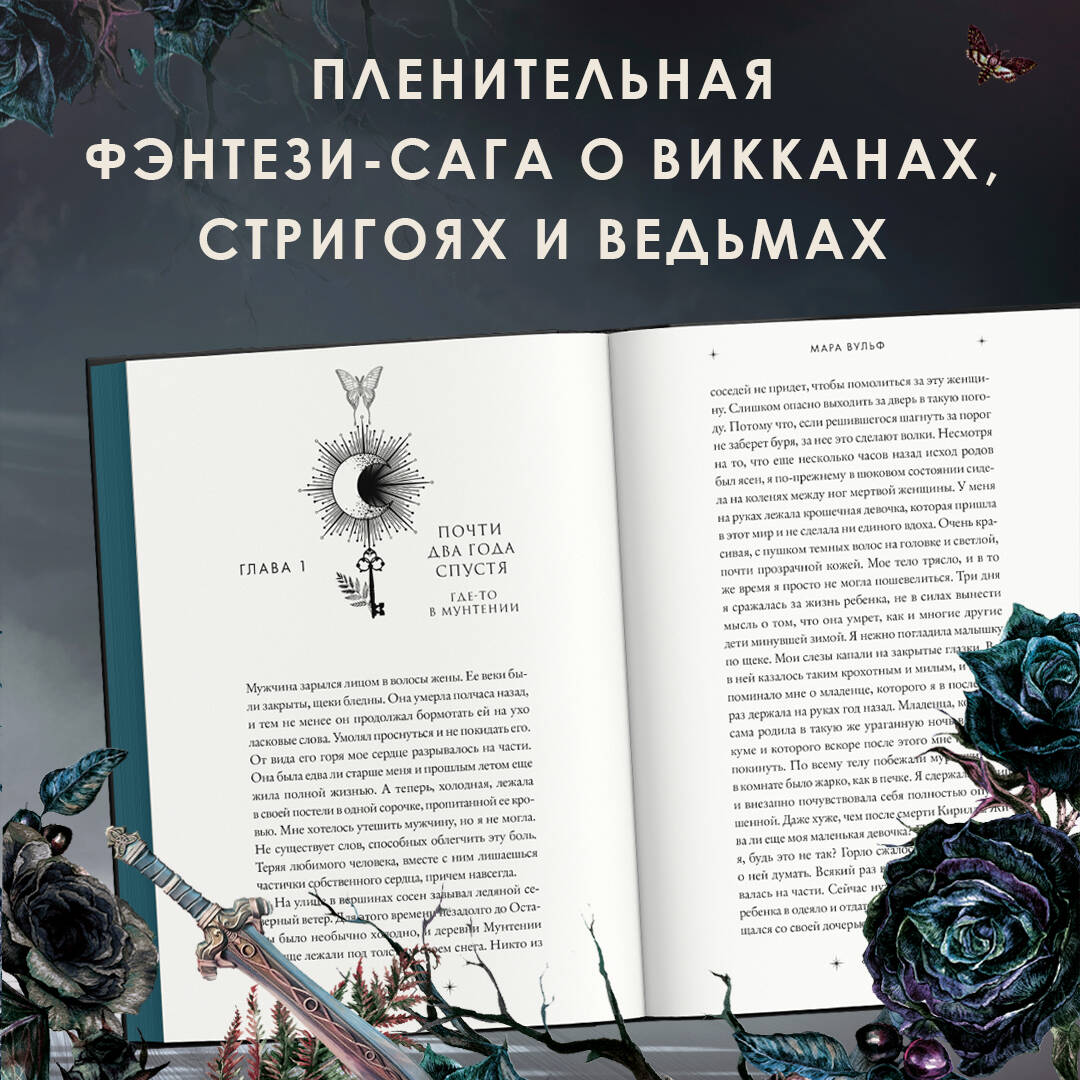 Захватывающее продолжение мрачно-романтичной, пленительной фэнтези-саги о викканах, стригоях и ведьмах от королевы немецкого фэнтези Мары Вульф! Темные ритуалы, викканская магия, румынский сеттинг, руны, стригои-кровопийцы и сделка с собственной совестью! Валеа живет в Мунтении уже два года, оборвав все связи с магическим миром, прячась среди людей. Ее магия теперь лишь причиняет вред ей самой и самым близким. Тем временем королева ведьм захватила власть в Ардяле и продолжает искать свою правнучку по всему миру, чтобы использовать ее силу как оружие против всего мира. Валею находят Магнус, Кайла и Селия, умоляя ее вернуться в Ардял, чтобы восстановить порядок, но их она считает предателями. Сердце викканки разбито, и кто знает, какие еще сюрпризы принесут ей те, кого она считала своими союзниками… Любовь и ненависть. Тайны старинных викканских гримуаров. Загадочное прошлое. Знаки судьбы и предсказания рун. Серия - настоящая головоломка, написанная потрясающим слогом знаменитой Мары Вульф! Для всех поклонников мистического фэнтези. Более 16 тыс. отзывов на Амазон на серию! Первый том цикла - бестселлер по версии немецкого журнала «Spiegel».| Издательство | ООО "Издательство "Эксмо" |