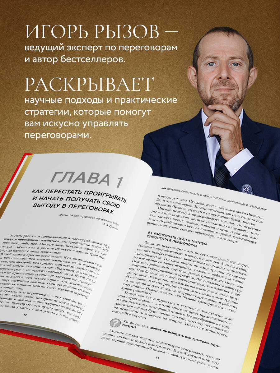 Как вести переговоры в новой реальности и делать это качественно? На страницах книги вы найдете не только научные подходы, которые используют спецслужбы, но и практические упражнения, а также стратегии перехвата, удержания и управления в сложных переговорных ситуациях. Игорь Рызов - ведущий эксперт по переговорам, автор бестселлеров "Психотрюки", "75 правил влияния великих людей", "Переговоры с монстрами", "Большая книга переговоров" и других.| Издательство | ООО "Издательство "Эксмо" |
