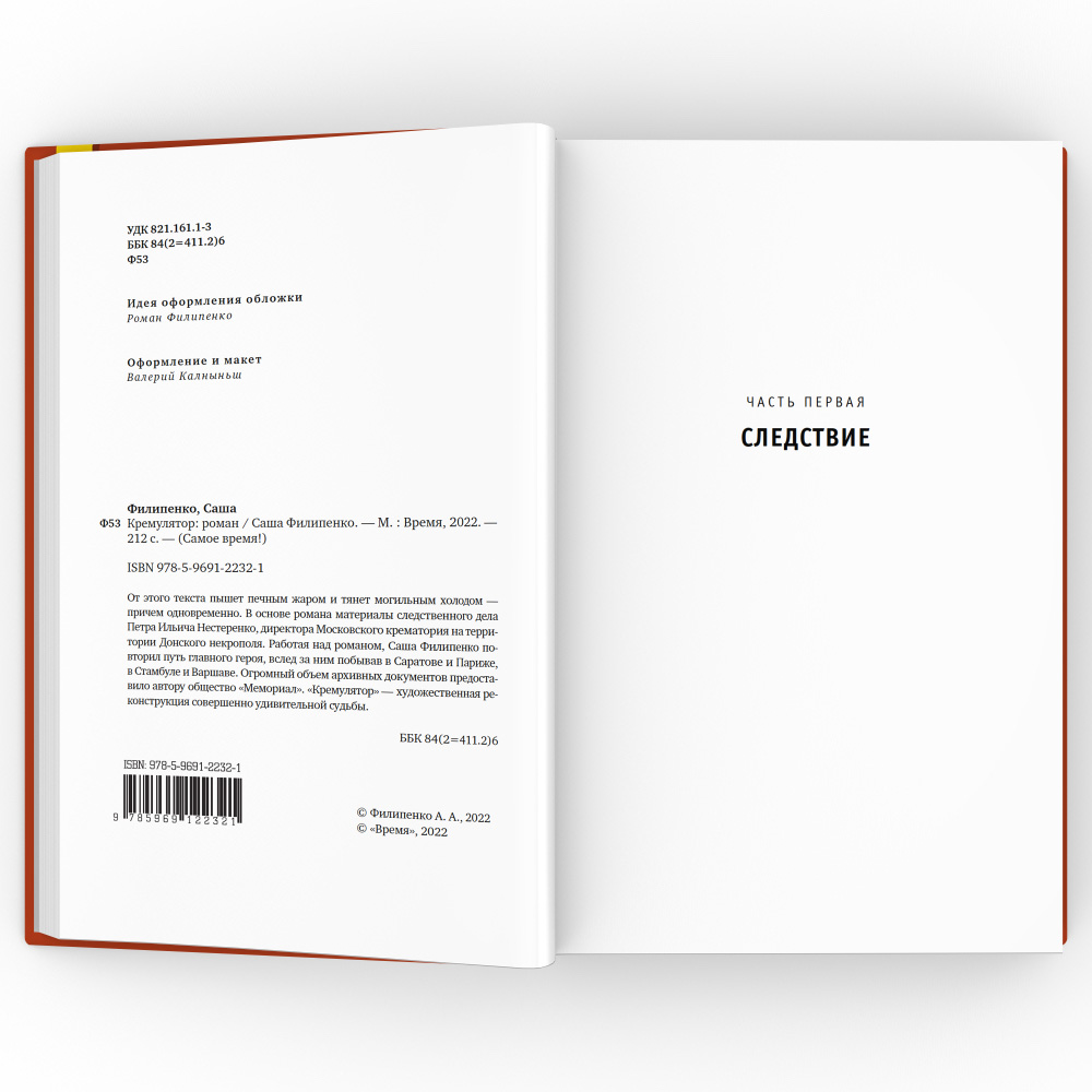 От этого текста пышет печным жаром и тянет могильным холодом - причем одновременно. В основе романа материалы следственного дела Петра Ильича Нестеренко, директора Московского крематория на территории Донского некрополя. Работая над романом, Саша Филипенко повторил путь главного героя, вслед за ним побывав в Саратове и Париже, в Стамбуле и Варшаве. Огромный объем архивных документов предоставило автору общество «Мемориал». «Кремулятор» - художественная реконструкция совершенно удивительной судьбы.| Издательство | Время |