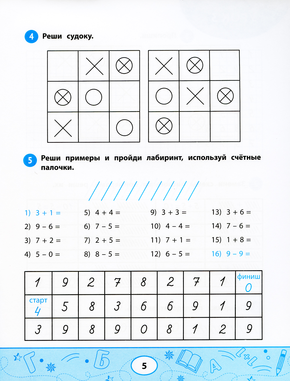 Счёт - основа всех основ! Он нужен не только на математике, но и на других уроках, а также в повседневной жизни. Не каждый умеет считать в уме, визуализация примеров очень важна для большинства детей. В книге «Крестики-нолики» использован простой алгоритм визуализации действий, чтобы детям было проще понять основы счёта. Пройдя курс данного пособия, ребёнок сможет легко решать примеры. Сборник включает задания для овладения счётом в пределах 100, упражнения на логику, ориентацию в пространстве и концентрацию внимания. Данное пособие подойдёт для детей 6-9 лет, которые уже знают цифры и умеют их писать.| Издательство | Феникс |