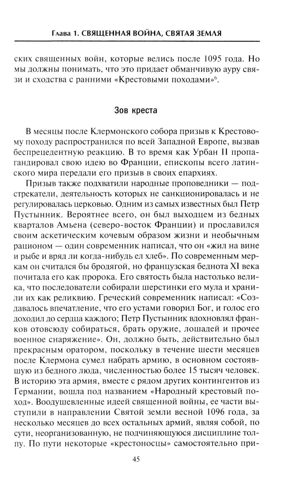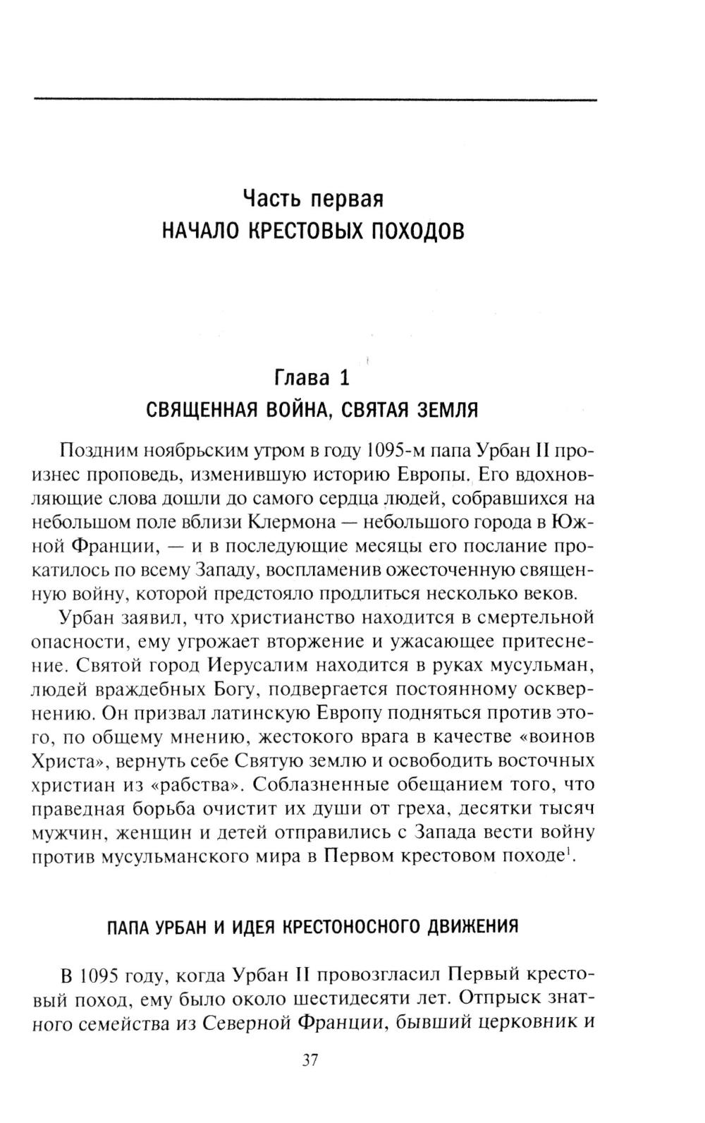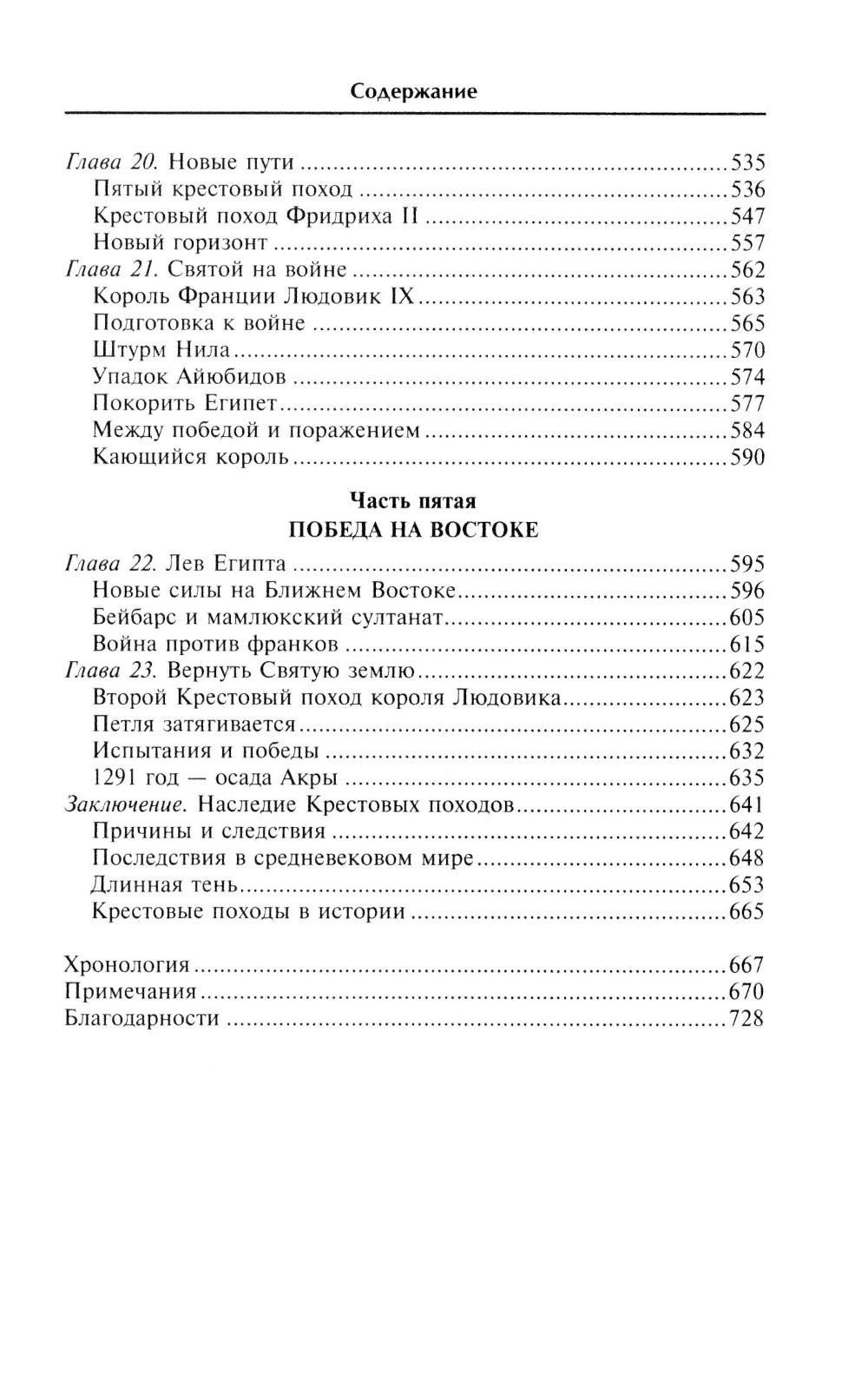 Британский историк Томас Эсбридж в своей книге ведет рассказ о Крестовых походах - войнах за господство над Святой землей, регионом, священным как для христиан, так и для приверженцев мусульманской веры, - которые велись на протяжении двух столетий. В них участвовали такие выдающиеся личности, как Ричард Львиное Сердце, Людовик IX, Филипп-Август, Занги, Бейбарс и многие другие. Рассматривая историю кровавой борьбы с точки зрения и христиан, и мусульман, автор тем самым избегает в повествовании предвзятости. Большое внимание он уделяет и урокам этих походов, предостерегая об опасности исторического параллелизма.| Издательство | Центрполиграф |