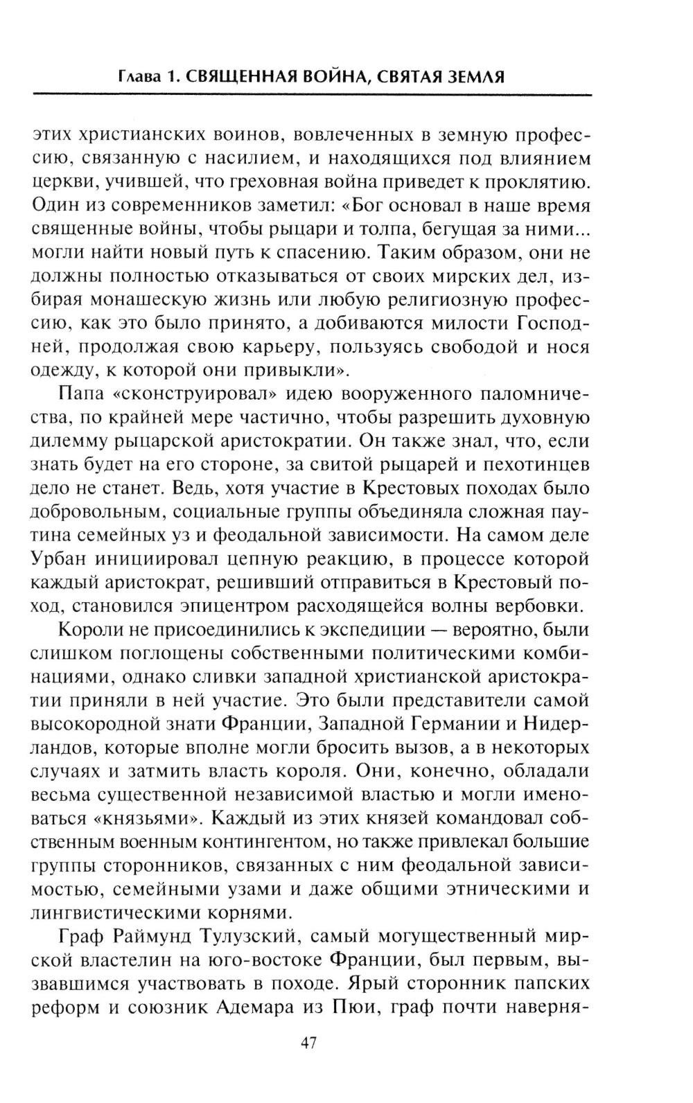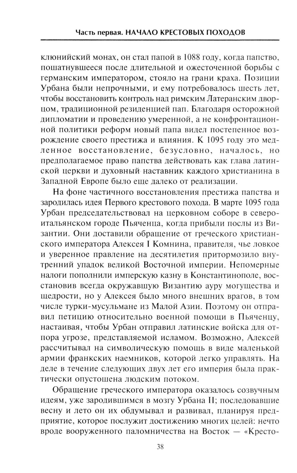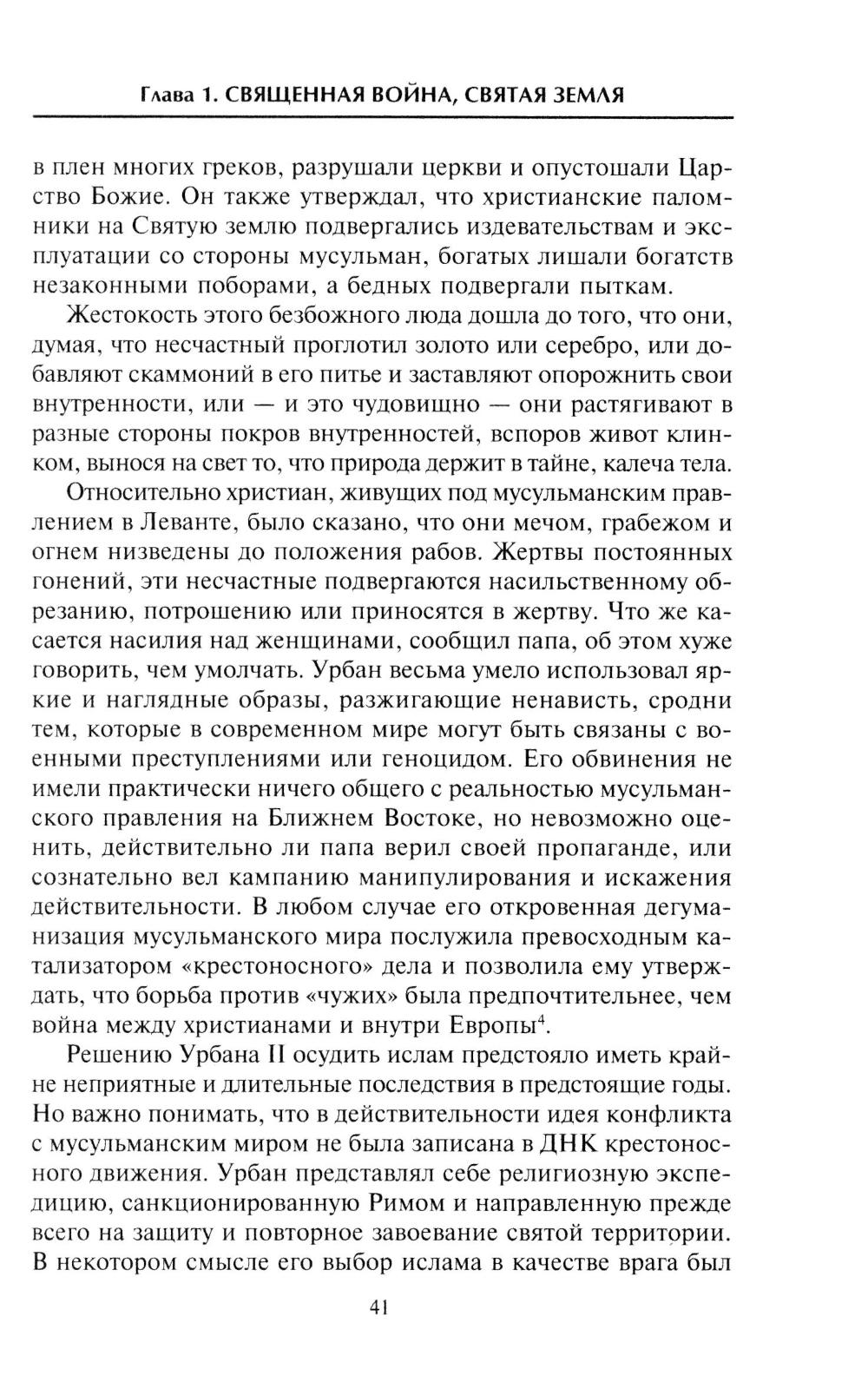 Британский историк Томас Эсбридж в своей книге ведет рассказ о Крестовых походах - войнах за господство над Святой землей, регионом, священным как для христиан, так и для приверженцев мусульманской веры, - которые велись на протяжении двух столетий. В них участвовали такие выдающиеся личности, как Ричард Львиное Сердце, Людовик IX, Филипп-Август, Занги, Бейбарс и многие другие. Рассматривая историю кровавой борьбы с точки зрения и христиан, и мусульман, автор тем самым избегает в повествовании предвзятости. Большое внимание он уделяет и урокам этих походов, предостерегая об опасности исторического параллелизма.| Издательство | Центрполиграф |