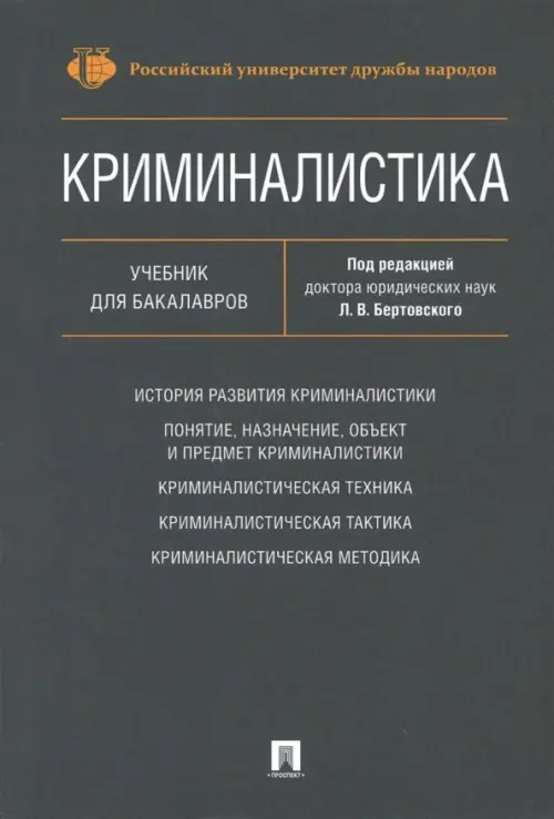 В настоящем учебнике в доступной форме излагается полный курс криминалистики как учебной дисциплины, предусмотренной требованиями федерального государственного образовательного стандарта высшего образования по направлению подготовки 40.03.01 "Юриспруденция" (уровень бакалавриата). Освещены общая теория и методология криминалистики, раскрыто основное содержание криминалистической техники, тактики следственных действий и методики расследования наиболее опасных и распространенных преступлений. Отражены произошедшие за последние годы изменения в теории криминалистики, практике раскрытия и расследования преступлений в современных условиях, а также зарубежный опыт. Излагаемый материал проиллюстрирован схемами, рисунками и фотографиями, каждая глава содержит методические материалы (задачи, вопросы для обсуждения и т. д.).