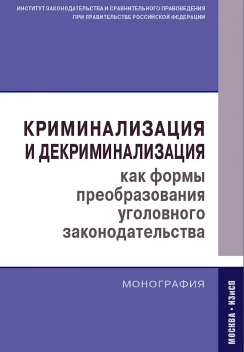 Аннотация: Криминализация и декриминализация как формы преобразования уголовного законодательства. Монография