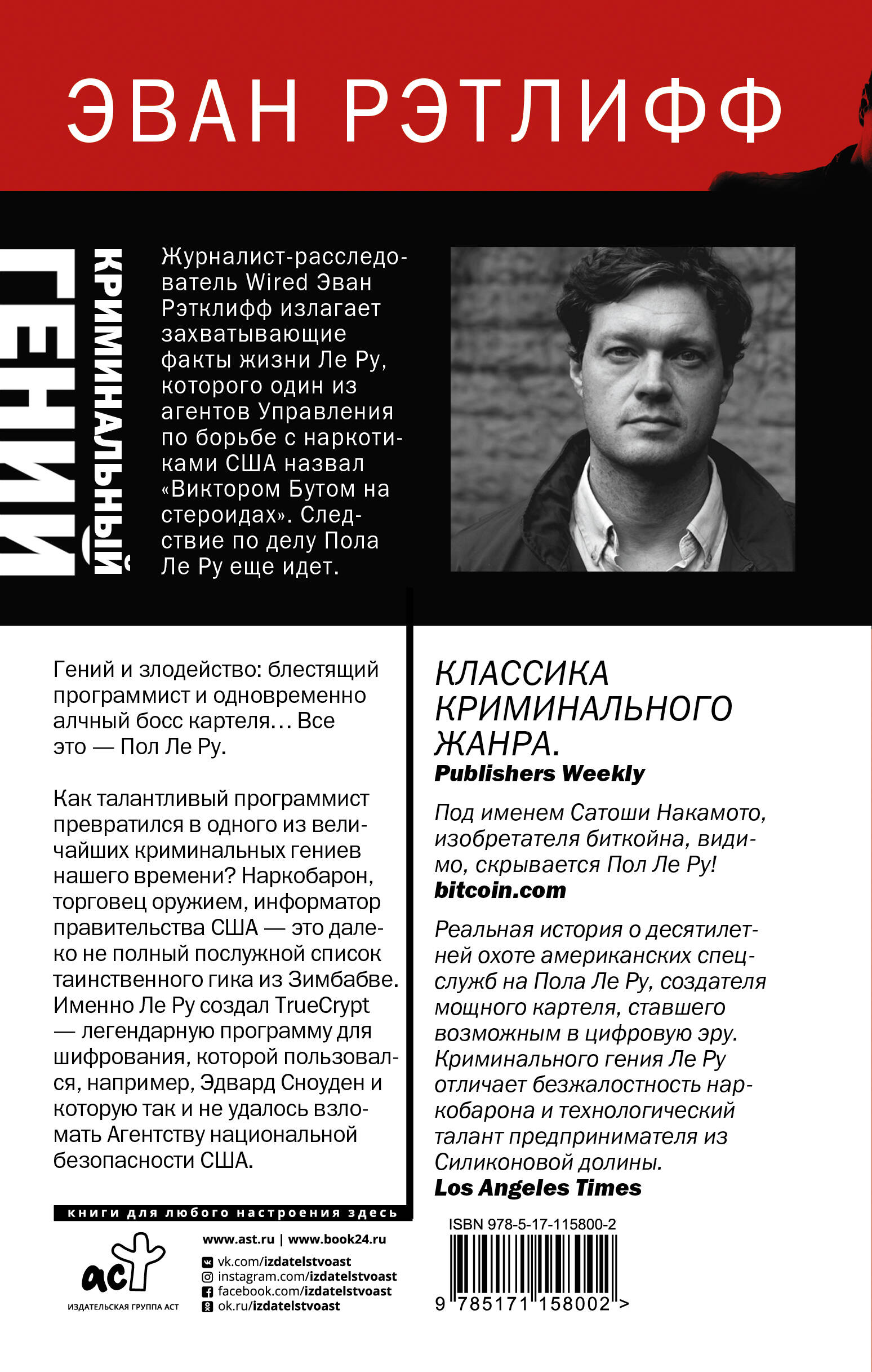 Что связывает талантливого программиста и создателя открытой системы шифрования TrueCrypt с главой наркокартеля, осуществляющего свою деятельность на просторах даркнета? Пол ле Ру использует свои навыки, чтобы годами укрываться от глаз закона, лишь расширяя зону своего влияния. К тому моменту, как он согласился сотрудничать с Управлением по борьбе с наркотиками, его имя связывали не только с незаконным оборотом лекарств и наркотиков, золота и оружия, но и с рядом убийств, и с отмыванием денег. Эван Рэтлифф восстанавливает цепочку событий, чтобы соединить все эти паззлы воедино.| Издательство | ИЗДАТЕЛЬСТВО "АСТ" |