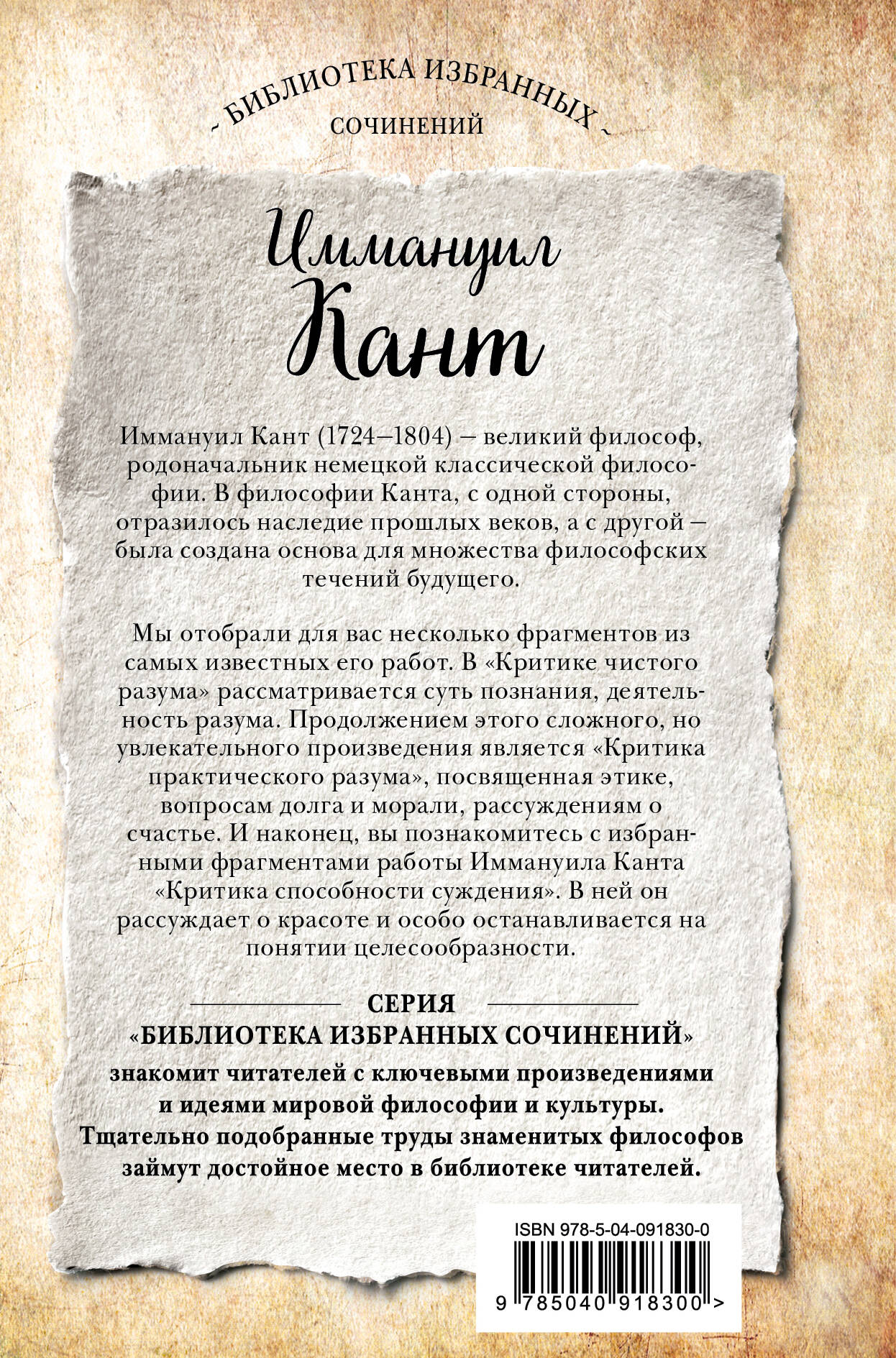 Иммануил Кант не искал ответов на простые вопросы. Он всегда рассуждал о наиболее сложном - и наиболее важном для человека. Как осуществляется процесс познания и как далеко может зайти человек по этому пути? Как соотносятся друг с другом познание и нравственное начало в человеке? Возможно ли достижение святости? Что такое прекрасное? Является ли представление о нем субъективной категорией или объективной? Размышления философа имеют не только теоретический характер. Нравственное, прекрасное - эти категории важны для нас. А границы познания человечество определяет и по сей день. В настоящем издании представлены фрагменты базовых работ одного из величайших философов всех времен.