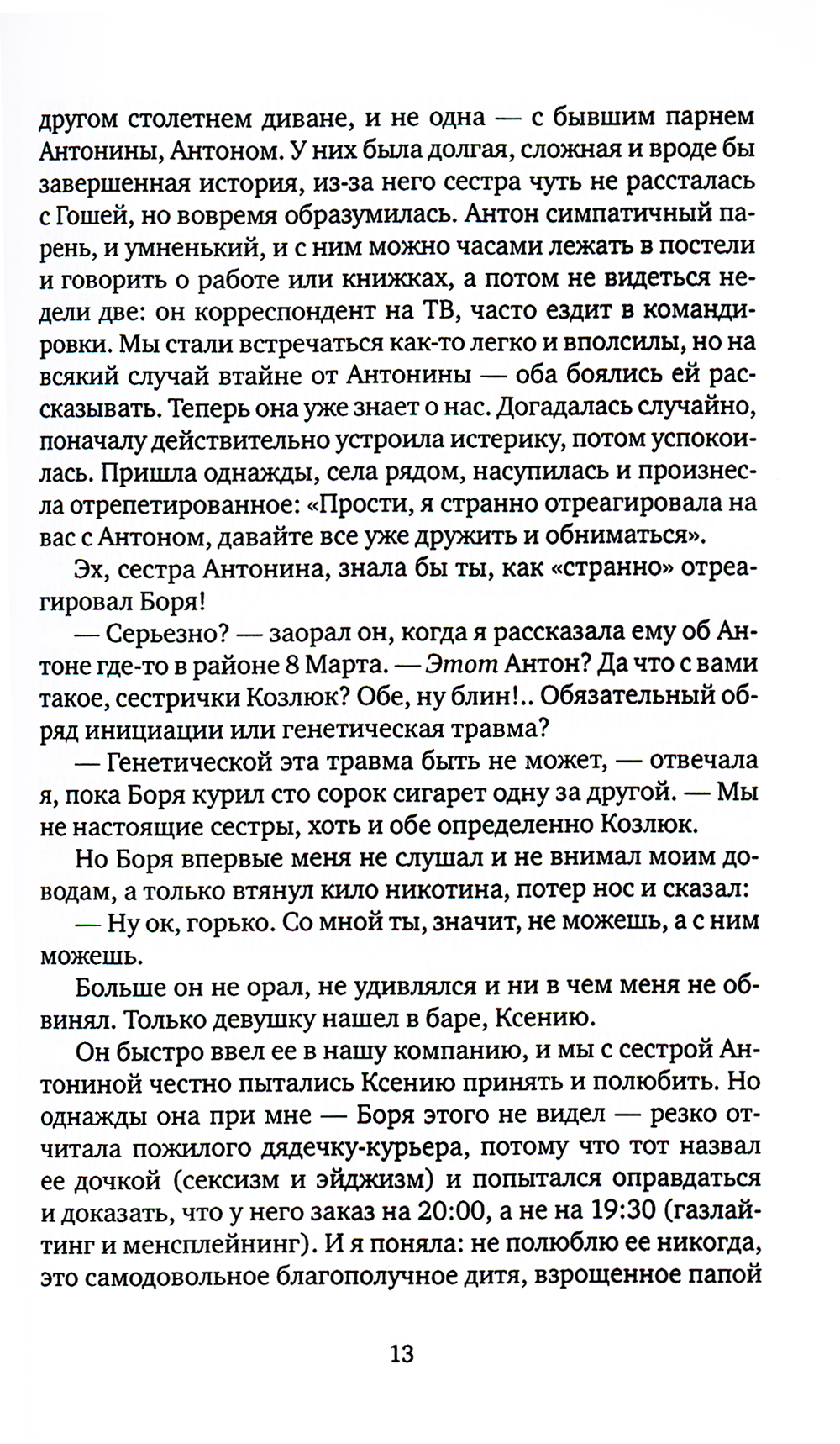 «Кризис Ж» Евгении Батуриной - продолжение ее романа «Выход А», в 2020 году попавшего в десятку лучших романов на русском языке по версии читателей LiveLib. И если в первой книге главная героиня Антонина Козлюк боролась с внешним миром, то ее так называемая сестра Жозефина в основном борется с миром внутренним. Жозефина Козлюк живет успешной, яркой и насыщенной жизнью: успешно теряет людей, ярко переживает, насыщенно ревнует. И, как это бывает в любом кризисе, узнает много нового. Например, такое: любовь могут разрушить не только злая судьба, жестокие родители или третий лишний. Самостоятельно мы справляемся гораздо лучше! Кто же поможет Жозефине - сестра Антонина, знаменитый художник, говорящие животные или революционные декабристы? Неожиданных поворотов сюжета здесь так же много, как закоулков и гостей в Нехорошей квартире, а юмора, шуток и нелепых ситуаций - как круассанов, пирожков, страчателлы, чиабатты и... И почему вы все еще читаете эту аннотацию, а не роман?!| Издательство | Время |