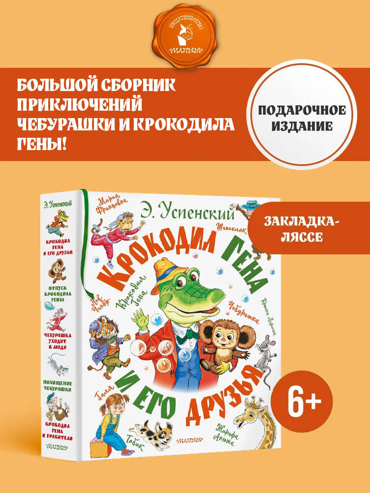 В этой книге - пять повестей про Чебурашку и крокодила Гену: «Крокодил Гена и его друзья» (мультфильмы «Крокодил Гена и его друзья», «Чебурашка»); «Отпуск крокодила Гены» (мультфильм «Шапокляк»), «Чебурашка уходит в люди»; «Похищение Чебурашки» и «Крокодил Гена и грабители». Иллюстрации ко всем повестям сделали художники С.Бордюг и Н.Трепенок. Это ПОЛНОЕ собрание приключений крокодила Гены и Чебурашки - от их знакомства друг с другом и новыми товарищами (и разумеется, со старухой Шапокляк!) до детективной истории про ограбление шоколадной фабрики. Наши герои стали чуточку старше, мудрее, но не потеряли своего обаяния и дружелюбия.| Издательство | ИЗДАТЕЛЬСТВО "АСТ" |