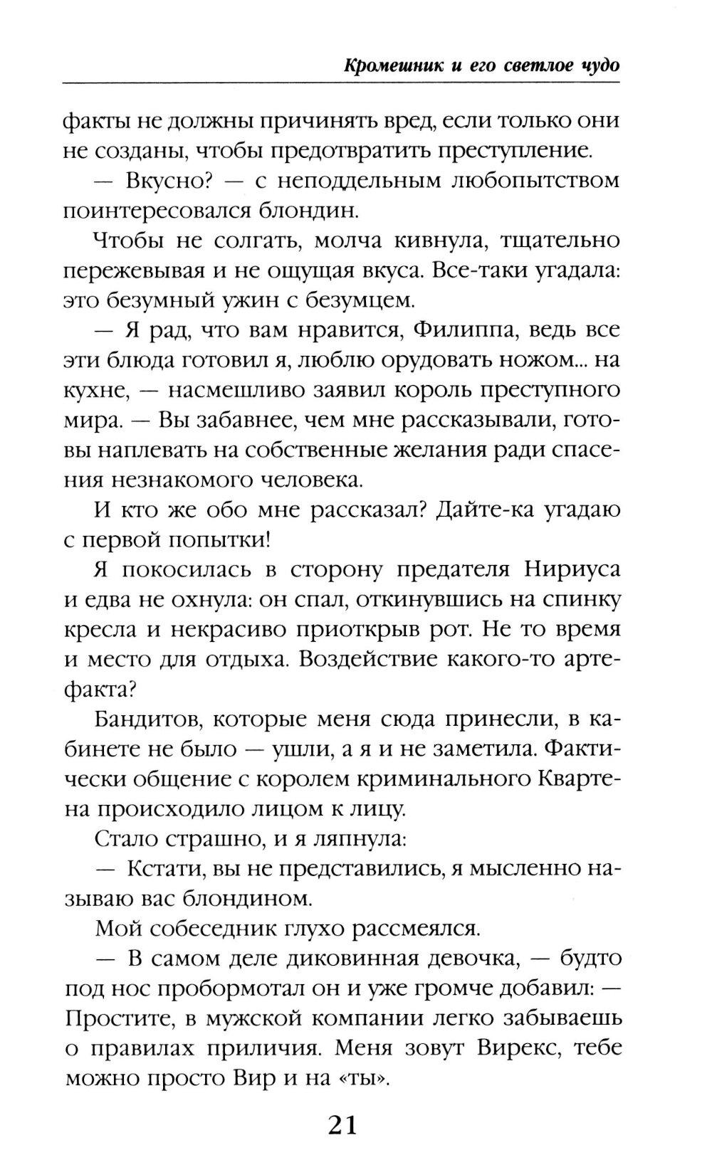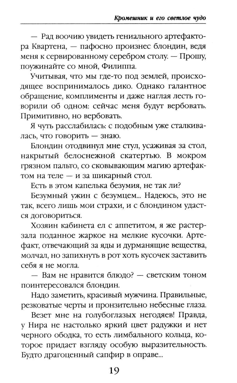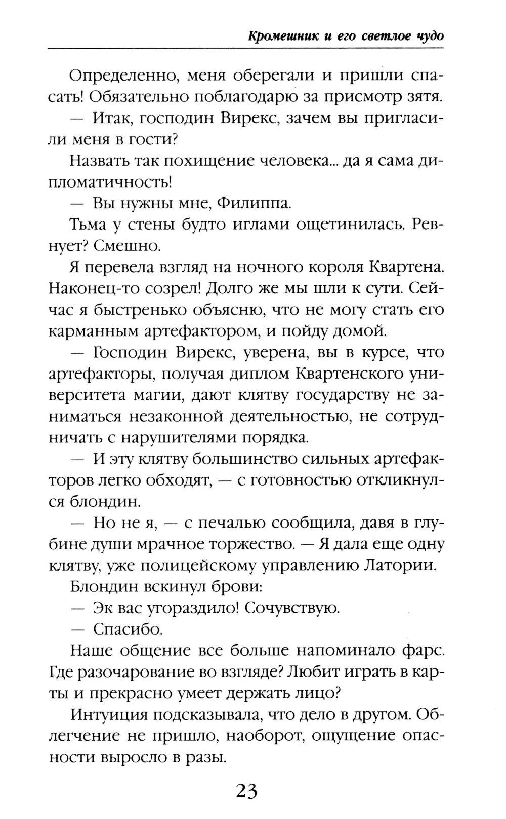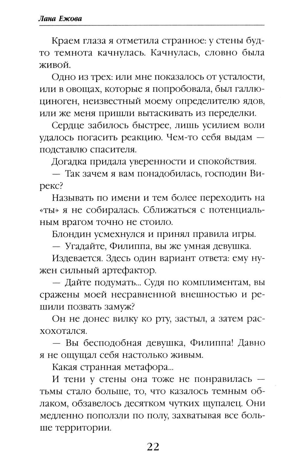 Мне не нужна любовь: артефакты гораздо увлекательнее! Так почему же вокруг вьется столько мужчин? Капитан магполиции, бывший помощник, король бандитов... многовато для меня одной. А еще есть поцелуйный маньяк и зачарованный принц в гробу... Неприятности липнут как репейник. От кого ждать помощи? Может, моим спасением станет темный маг из ордена Кромешной Тьмы? Вот только почему же он скрывает свое лицо?| Издательство | Эксмо |