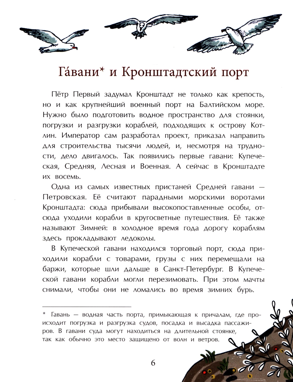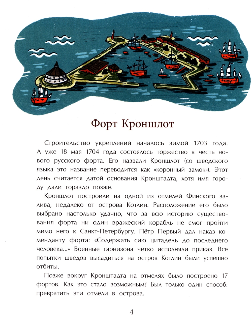 Кронштадт - город-крепость и колыбель русского флота. За всю историю города ни один вражеский корабль не смог пройти мимо него к Санкт-Петербургу. Жизнь Кронштадта всегда была прочно связана с Военно-морским флотом России, а основными его жителями стали офицеры и моряки. Как проходила их повседневная жизнь на острове? Как строились форты, гавани и пристани? Давайте узнаем об этом, вернувшись во времена, когда Пётр Первый воплощал здесь мечты о величии Российской державы.| Издательство | Настя и Никита |
