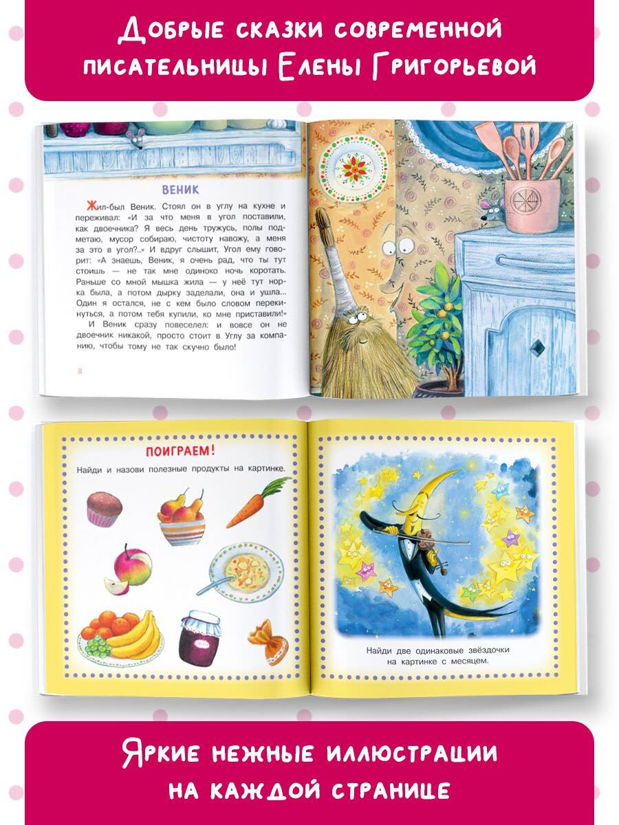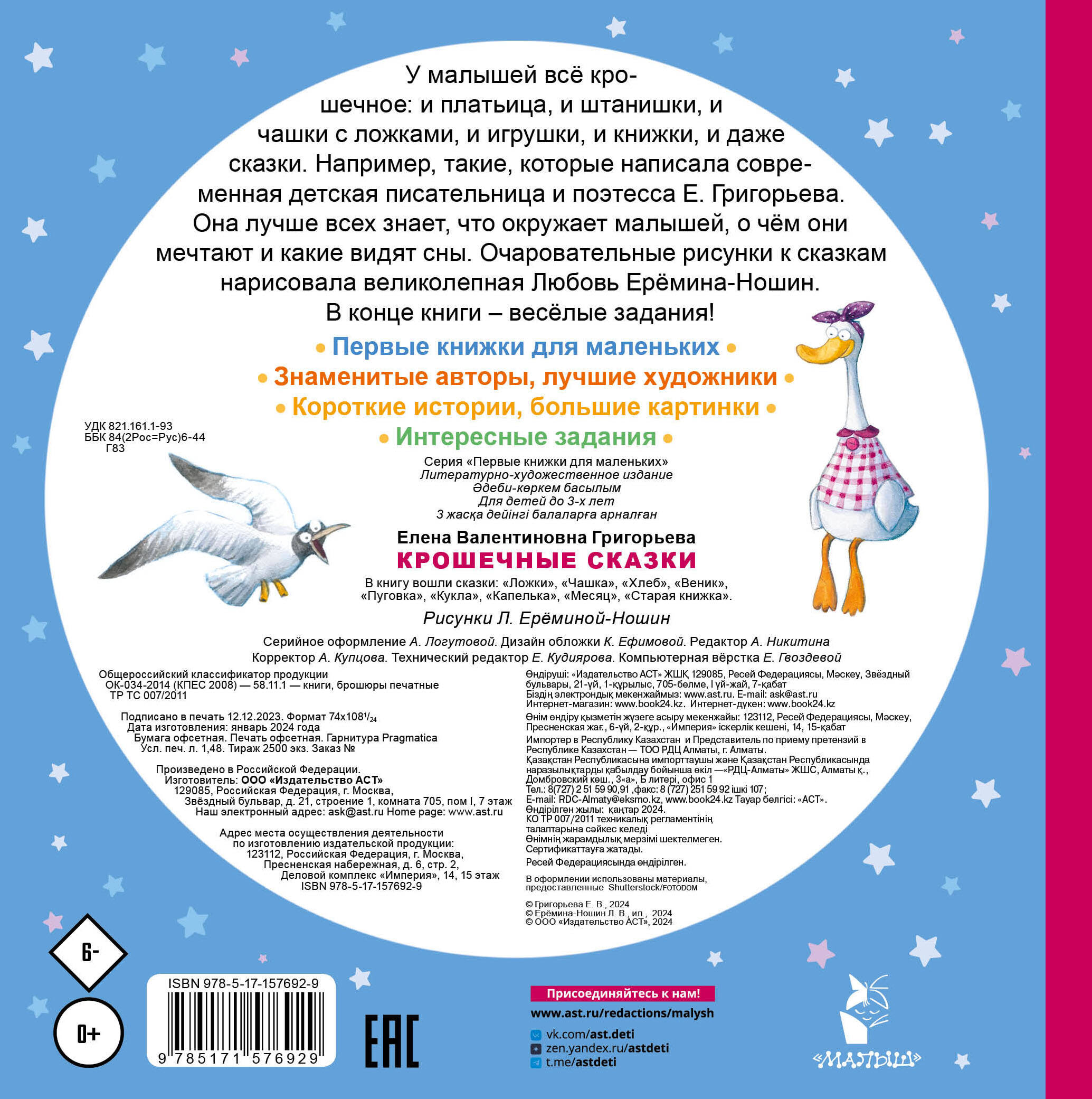 У малышей всё крошечное: и платьица, и штанишки, и чашки с ложками, и игрушки, и книжки, и даже сказки. Например, такие, которые написала современная детская писательница и поэтесса Е. Григорьева. Она лучше всех знает, что окружает малышей, о чём они мечтают и какие видят сны. Очаровательные рисунки к сказкам нарисовала великолепная Любовь Ерёмина-Ношин. В конце книги - весёлые задания!| Издательство | Издательство "АСТ" |