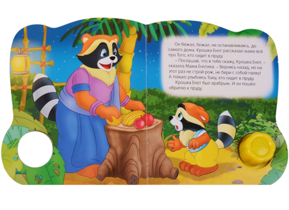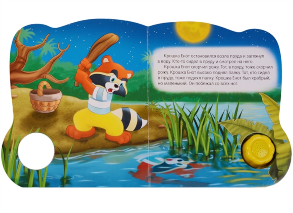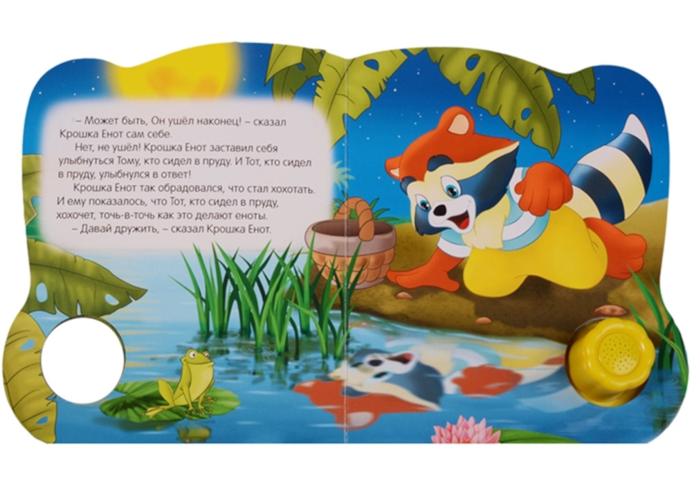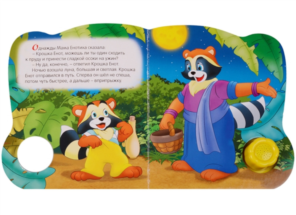 Добрая сказка «Крошка Енот» с любимой песенкой из одноименного мультфильма (по мотивам произведения Л. Муур). Стоит малышу нажать на кнопочку - и сказка оживёт! Батарейки AG3/LR41, размер товара 15х17,5 см.| Издательство | Азбукварик |