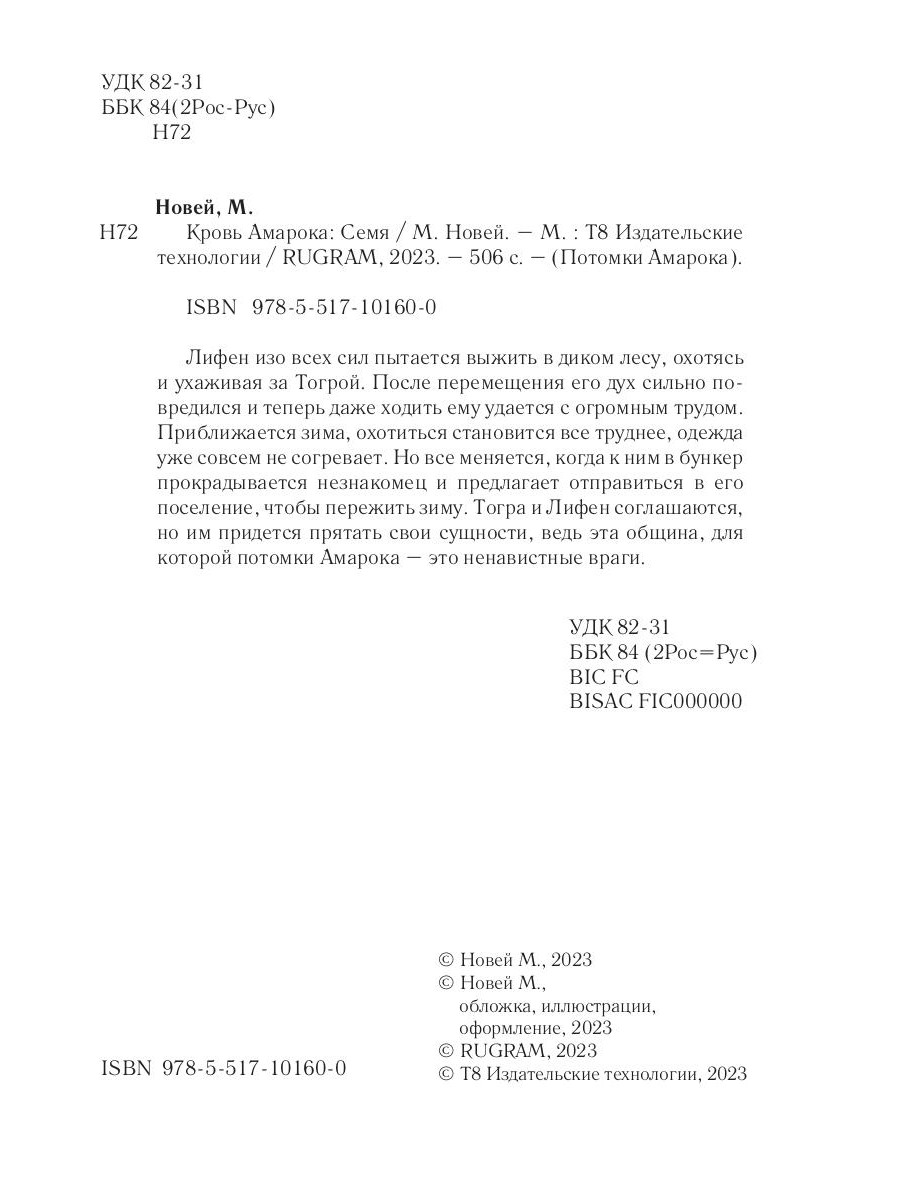 Лифен изо всех сил пытается выжить в диком лесу, охотясь и ухаживая за Тогрой. После перемещения его дух сильно повредился и теперь даже ходить ему удается с огромным трудом. Приближается зима, охотиться становится все труднее, одежда уже совсем не согревает. Но все меняется, когда к ним в бункер прокрадывается незнакомец и предлагает отправиться в его поселение, чтобы пережить зиму. Тогра и Лифен соглашаются, но им придется прятать свои сущности, ведь эта община, для которой потомки Амарока - это ненавистные враги.| Издательство | Т8 RUGRAM |