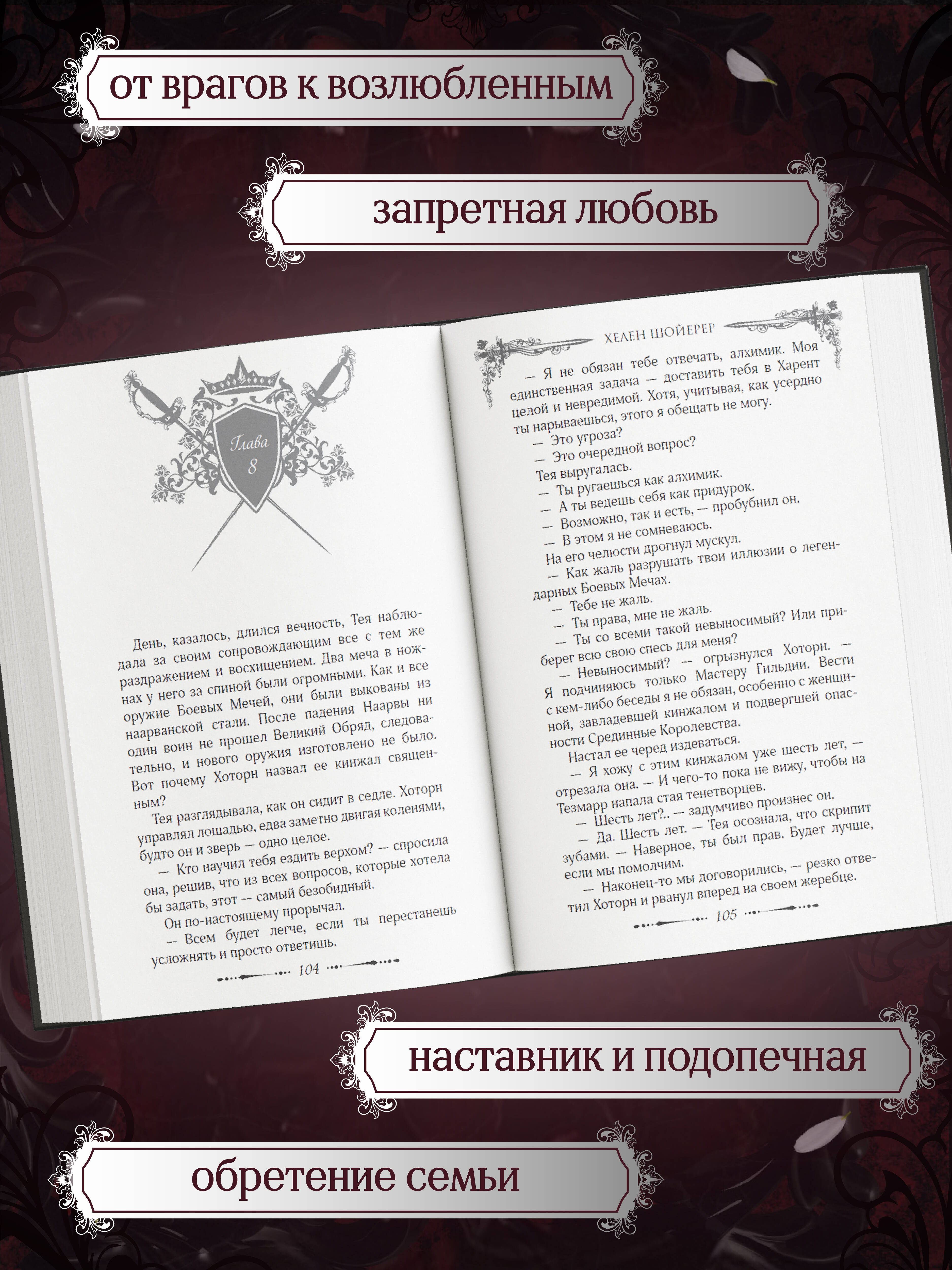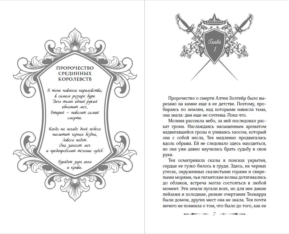 Сенсация BookTok! Первая часть захватывающего романического фэнтези серии «Легенды Тезмарра». Для всех поклонников тропа «от врагов к возлюбленным». Сотни лет завеса защищала королевство от тьмы и монстров, но однажды небеса поглотит черная бездна, и завеса падет. Наступит эра огня и крови. Дни Теи сочтены, ведь предсказание о ее смерти высечено на камне судьбы. У девушки есть ровно три года, чтобы осуществить мечту и стать легендарной воительницей Тезмарра. Двадцать лет назад, повинуясь пророчеству, все женщины были вынуждены сложить клинки, чтобы защитить королевство от будущих дочерей тьмы. Однако Тею это не остановило, и она всю жизнь тайно тренировалась, чтобы сегодня бороться за свое место в элитной гильдии, которая защищает пять королевств от монстров. Но страшнее спаррингов может оказаться только сильное притяжение Теи к суровому и жестокому Уайлдеру Хоторно, ее вынужденному наставнику. Когда вокруг них двоих начнут плестись интриги и нависнет тьма, Тее предстоит пройти испытание, чтобы занять место в ряду чемпионов Тезмарра… Однако надвигающееся зло может помешать осуществить задуманное. Любимые тропы: slow-burn, обретение семьи, запретная любовь, наставник/подопечная. Для фанатов романов «Из крови и пепла» Дженнифер Арментроут и «Королевство моста» Дженсен Даниэль.