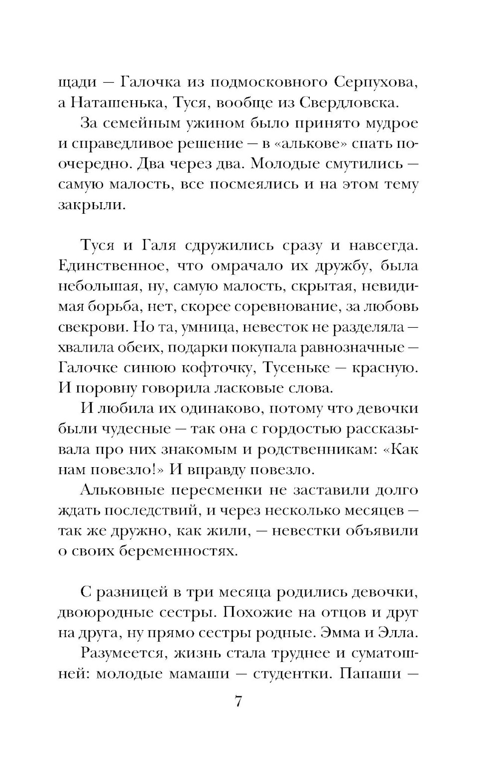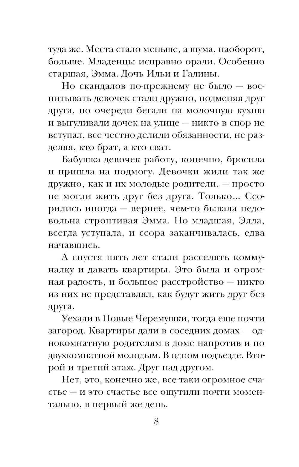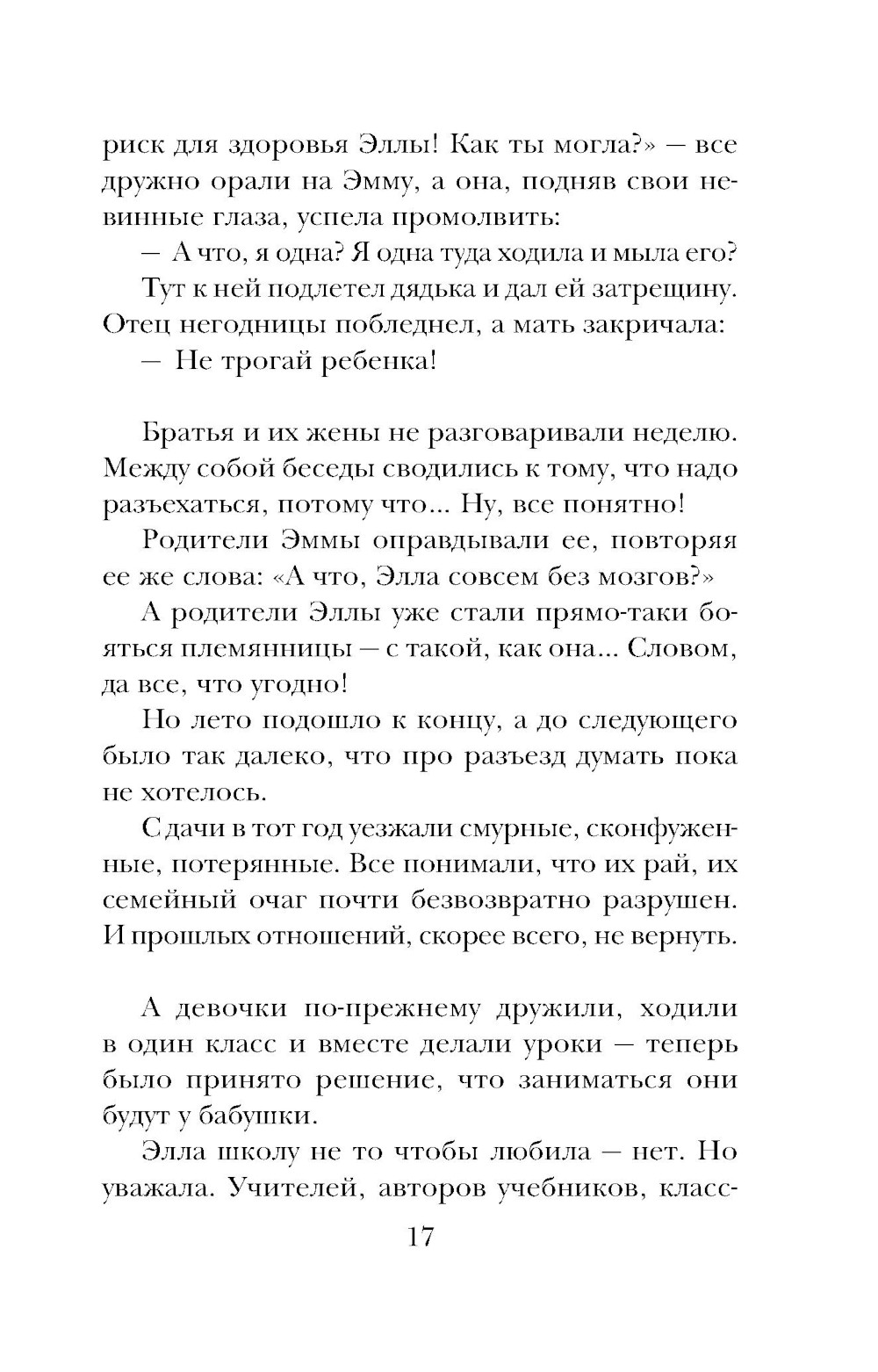 До какого предела можно идти на жертвы ради близких? Как, живя ради других, не потерять себя? Или жертвенность на то и жертвенность, чтобы отдавать без остатка? Вопросы эти каждый решает для себя. Для Эллы такой вопрос и не стоял - она, кажется, родилась для того, чтобы служить близким. А вот Эмма, ее сестра, всегда считала, что никому ничего не должна. Жила взахлеб, не оглядываясь, всегда зная, что есть Элла - безответная, верная, покорная. На которую можно положиться, которая всегда подставит плечо. И кто в итоге счастлив? Тот, кто брал или тот, кто отдавал? Тот, кому есть что вспомнить, или тот, кто в жизни так ничего и не увидел? Неужели чистая совесть и верность родственным узам стоят жизни, которой, по сути, и не было?| Издательство | Эксмо |