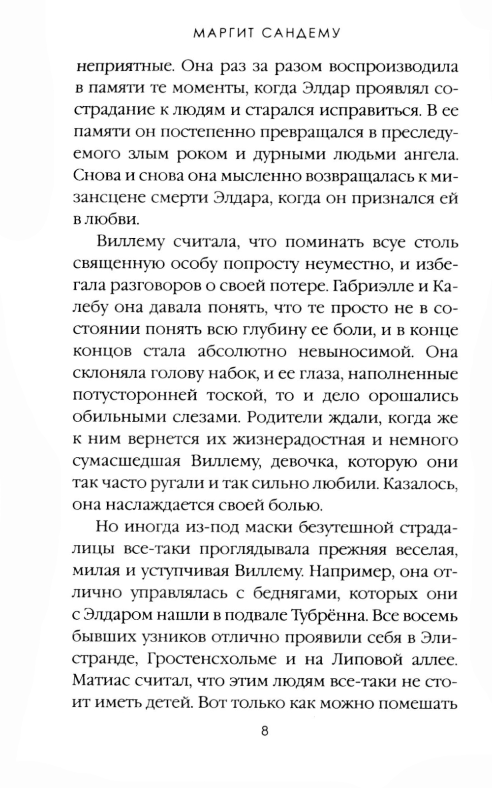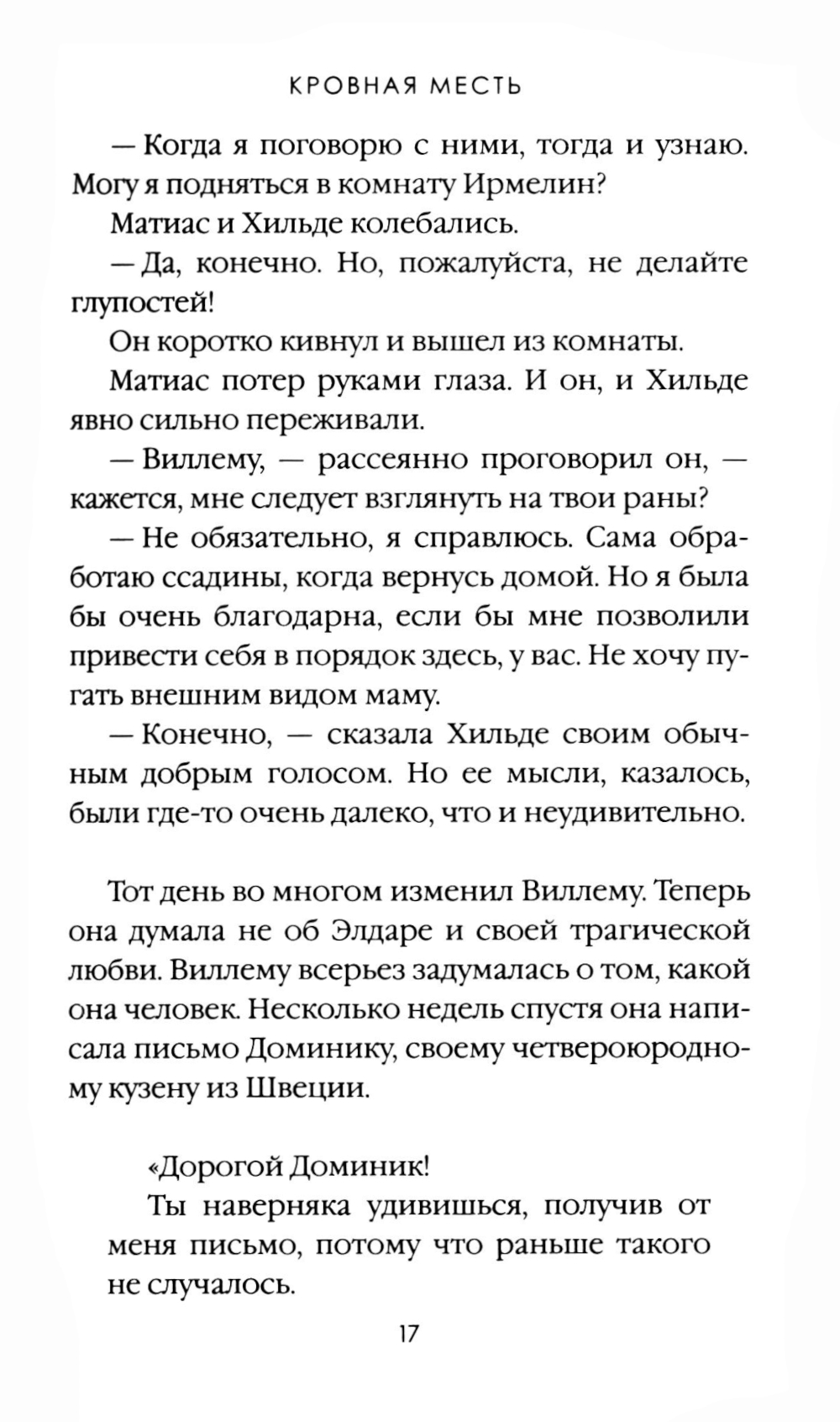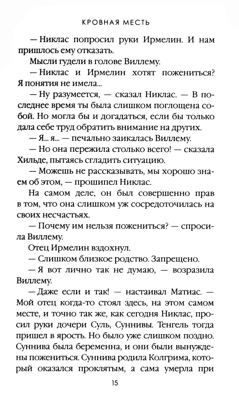 Виллему, меченая из рода Людей Льда, попала в серьезные неприятности, нечаянно став свидетельницей убийства Монса, одного из сыновей богатого фермера Воллера. Тот поклялся, что отомстит всем, кто так или иначе причастен к смерти сына. В том числе и Виллему, которая была влюблена в убийцу Монса, Элдара Свартскога. Вскоре Виллему бесследно исчезает из Гростенсхольма…| Издательство | Дом историй |