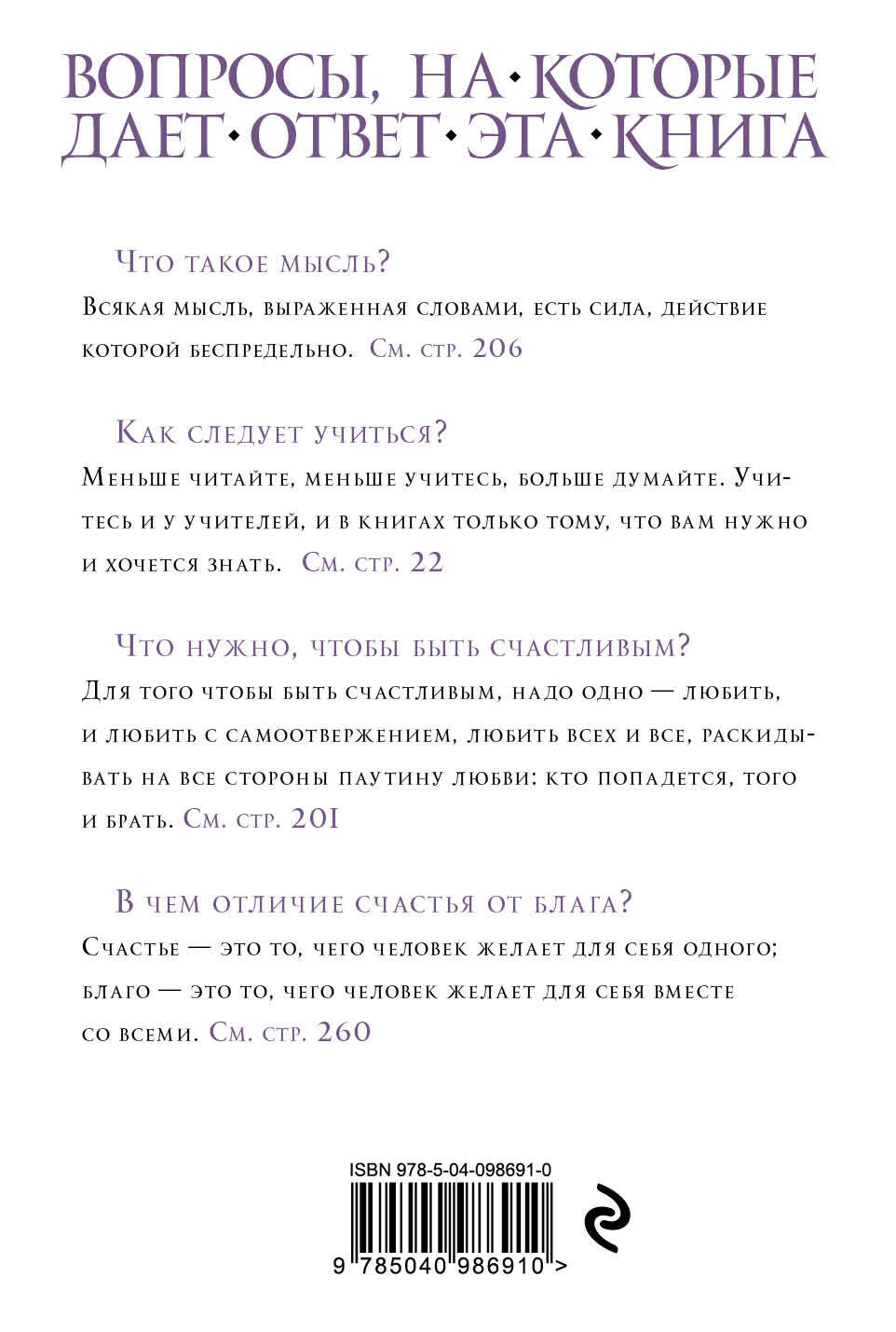 О серии: Серия «Великие идеи» представляет собой библиотеку выдающихся образцов человеческой мысли. Это подборка знаменитых произведений мыслителей всех времен и народов. Это главные произведения философов с древнейших времен: от Конфуция и Платона до Фрейда и Ницше. Мы особенно тщательно подбираем произведения, которые просто необходимо иметь в своей библиотеке как студентам, так и всем образованным и эрудированным людям. Удобный карманный формат, мягкая обложка позволят знакомиться с литературными трудами по пути в институт или на работу. Наши редакторы для удобства использования выделили в каждой книге раздел «Избранные цитаты», которые позволят при необходимости быстро вспомнить ключевые мысли авторов. Для кого: - для тех, кто интересуется философией, - для тех, кто ценит удобные форматы. В серии выходят: Никколо Макиавелли "Государь" Фридрих Ницше "Так говорил Заратустра" Эммануил Кант "Критика практического разума" Платон "Апология Сократа. Критон. Протагор" Александр Суворов "Наука побеждать" Артур Шопенгауэр "Мир как воля и представление" Конфуций "Суждения и беседы" Зигмунд Фрейд "Психопатология обыденной жизни" Аристотель "Политика"| Издательство | ООО "Издательство "Эксмо" |