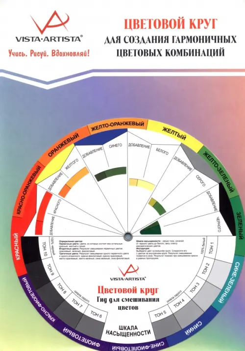 Цветовой круг является основой, на которой строится вся современная теория и практика колористики. Соответственно, в первую очередь он необходим тем, чья деятельность связана с выбором и подбором цвета. Это дизайнеры, проектировщики, художники, портные, фотографы, мастера визажа, маникюра, студенты творческих вузов и т.д. Благодаря своей универсальности, этот инструмент доступен и новичкам, для бытовых и любых других целей. Цветовой круг позволяет правильно обустроить жилище и сделать красивый ремонт, создать свой стиль одежды и удачно подбирать соответствующие друг другу аксессуары. Это идеальная шпаргалка для всех, кто хочет научиться гармонии цвета и жизни! Цветовой круг имеет две стороны: одна сторона предназначена для подбора цветовых сочетаний, другая - для определения цвета, получаемого путём смешения цветов.