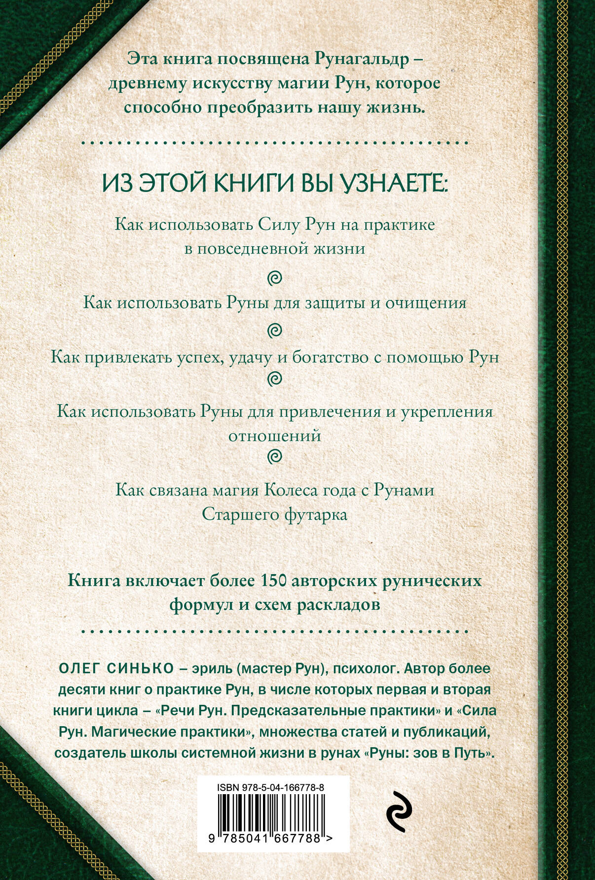 «Круг Рун» - книга, посвященная тому, как использовать руны день за днем в своей повседневной жизни, преображая ее и постепенно улучшая свои навыки работы с Силой Рун. Эта работа продолжает цикл книг рунолога, эриля и Мастера Рун Олега Синько, посвященный всестороннему изучению и применению Старших Рун. Первая и вторая книги цикла - «Речи рун. Предсказательные практики» и «Сила рун. Магические практики» рассказывают о гадании на рунах и принципах рунной магии. «Круг Рун» станет новым этапом в изучении и практике рун. Из этой книги вы узнаете: • Как использовать Силу Рун на практике в повседневной жизни. • Как использовать руны для защиты и очищения. • Как привлекать успех, удачу и богатство с помощью рун. • Как использовать руны для привлечения и укрепления отношений. • Как связана магия Колеса года с рунами Старшего футарка. Книга включает более 150 авторских рунических формул и схем раскладов. Олег Синько - эриль (мастер рун), психолог. Автор более десяти книг о практике рун, в числе которых первая и вторая книги цикла - «Речи рун. Предсказательные практики» и «Сила рун. Магические практики», множества статей и публикаций, создатель школы системной жизни в рунах «Руны: зов в Путь».| Издательство | ООО "Издательство "Эксмо" |