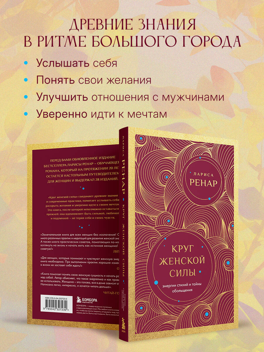 Обновленное издание знаменитого бестселлера Ларисы Ренар - обучающего романа, который уже 20 лет остается настольным путеводителем для женщин и выдержала 28 изданий. «Круг женской силы» соединяет древние знания и современные практики, помогает услышать себя, раскрыть желания и уверенно идти к мечтам. Это книга, после которой невозможно оставаться прежней: она вдохновляет быть сильной, любимой и подлинной, не теряя себя и своих чувств. Она возвращает женщину к себе - к энергии, любви, гармонии и внутреннему вдохновению, открывая путь к той глубинной силе, которая всегда была внутри. Легко и непринужденно автор знакомит нас с миром, где стихии и потоки энергии становятся частью жизни, где отношения выстраиваются осознанно, а легенды обретают практический смысл. Женские энергетические практики раскрываются как увлекательная и эффективная система. Афродита возвращает свою силу в XXI веке, и эта книга ярко показывает, насколько мощной может быть женская энергия, когда она пробуждена. - Понимание своей женской энергии и умение управлять ею каждый день. - Гармоничные отношения и мягкое влияние на окружающих. - Практики, которые реально работают и дают быстрые результаты. - Способность услышать себя, раскрыть желания и уверенно идти к мечтам. Новый формат - удобно брать с собой!| Издательство | ООО "Издательство "Эксмо" |