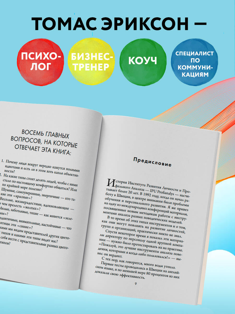 ФЕНОМЕН ШВЕДСКОГО КНИГОИЗДАНИЯ «Кругом одни идиоты» побила все рекорды шведского книжного рынка! Она стала одной из немногих скандинавских книг по популярной психологии, которая была переведена на 22 языка и продана общим тиражом 550 000 экземпляров! В течение двух лет книга держится в Топ-5 нехудожественных произведений среди всех скандинавских изданий и не собирается сдавать позиций. В ЧЕМ СЕКРЕТ УСПЕХА В основе книги лежит несложная методика цветотипирования человеческих характеров. Шведский психолог Томас Эриксон делит всех людей на четыре типа: красный, желтый, зеленый, синий - и очень увлекательно, на узнаваемых примерах описывает логику поведения, темперамент, систему ценностей представителей каждого типа. Казалось бы, ничего нового. Подобный подход использовался психологами на протяжении десятилетий. Но Томасу Эриксону удалось придумать настолько удобную систему работы с известными инструментами, что сегодня книга «Кругом одни идиоты» лежит на столе каждого шведского руководителя, учителя и журналиста. ЧЕМУ УЧИТ ЭТА КНИГА Прежде всего тому, как понимать тех, кого понять решительно невозможно, - людей с максимально отличным от нашего образом мышления, темпераментом и системой ценностей. Эту книгу можно назвать универсальной отмычкой к личности любого человека. Томас Эриксон помогает не только понять, что происходит в чужой голове и душе, но и позволяет понять, как вас воспринимают окружающие. ОБ АВТОРЕ Томас Эриксон - шведский психолог, бизнес-тренер, коуч, специалист по коммуникациям. Автор двух международных бестселлеров - «Кругом одни идиоты» и «Кругом одни психопаты».| Издательство | ООО "Издательство "Эксмо" |