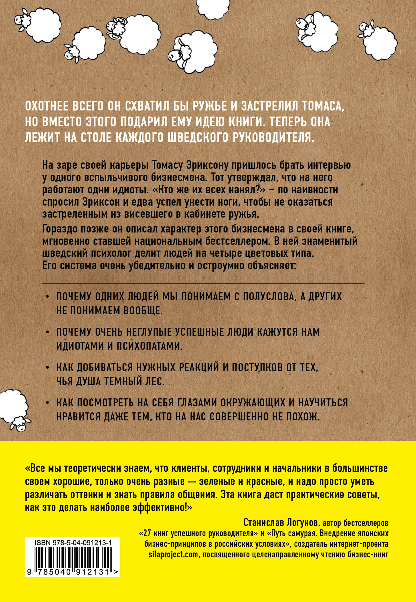 ФЕНОМЕН ШВЕДСКОГО КНИГОИЗДАНИЯ! Книга «Кругом одни идиоты» побила все рекорды шведского книжного рынка! Она стала одной из немногих скандинавских книг по популярной психологии, которая была переведена на 22 языка и продана общим тиражом 550 000 экземпляров! В течение двух лет книга держится в Топ-5 нехудожественных произведений среди всех скандинавских изданий и не собирается сдавать позиций. В ЧЕМ СЕКРЕТ УСПЕХА В основе книги лежит несложная методика цветотипирования человеческих характеров. Шведский психолог Томас Эриксон делит всех людей на четыре типа: красный, желтый, зеленый, синий - и очень увлекательно, на узнаваемых примерах описывает логику поведения, темперамент, систему ценностей представителей каждого типа. Казалось бы, ничего нового. Подобный подход использовался психологами на протяжении десятилетий. Но Томасу Эриксону удалось придумать настолько удобную систему работы с известными инструментами, что сегодня книга «Кругом одни идиоты» лежит на столе каждого шведского руководителя, учителя и журналиста. ЧЕМУ УЧИТ ЭТА КНИГА Прежде всего тому, как понимать тех, кого понять решительно невозможно, - людей с максимально отличным от нашего образом мышления, темпераментом и системой ценностей. Эту книгу можно назвать универсальной отмычкой к личности любого человека. Томас Эриксон помогает не только понять, что происходит в чужой голове и душе, но и позволяет понять, как вас воспринимают окружающие. ОБ АВТОРЕ Шведский психолог, бизнес-тренер, коуч, специалист по коммуникациям. Автор двух международных бестселлеров «Кругом одни идиоты» и «Кругом одни психопаты».| Издательство | ООО "Издательство "Эксмо" |