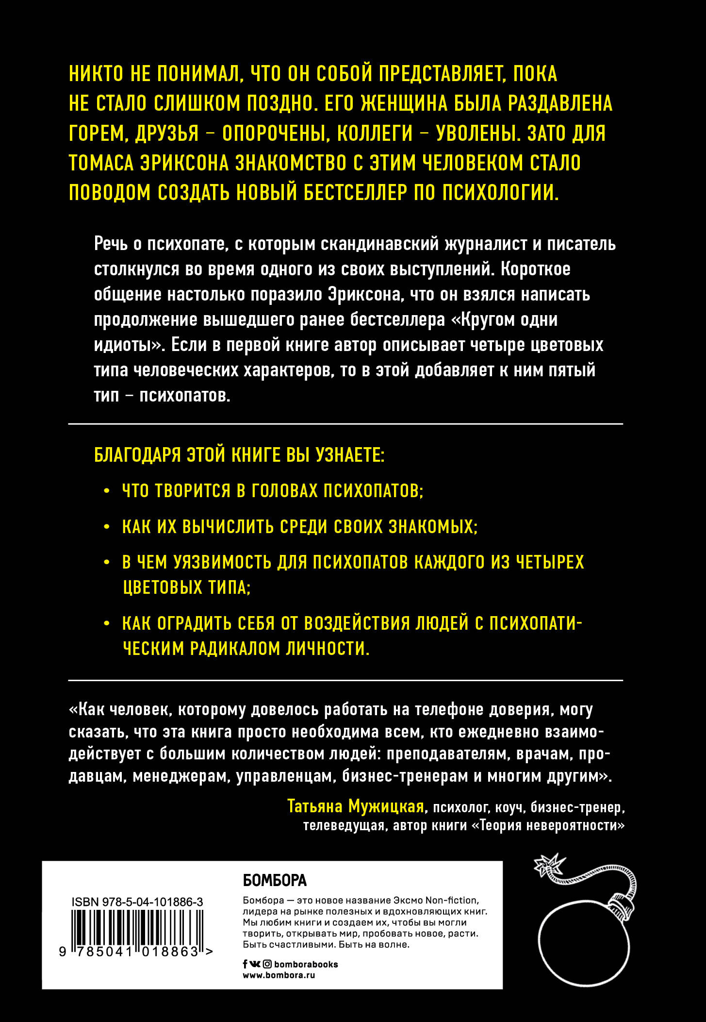 Скандинавский бестселлер по психологии от автора «Кругом одни идиоты» - книги, проданной за год в России тиражом 20 000 экземпляров, в мире - 1 000 000 экземпляров. Новая книга «Кругом одни психопаты» является продолжением первой книги. Рассказывает, как распознавать психопатов среди окружающих и защищаться от их манипуляций. В скандинавских странах «Кругом одни психопаты» является книгой №3 в нише популярной психологии.| Издательство | ООО "Издательство "Эксмо" |