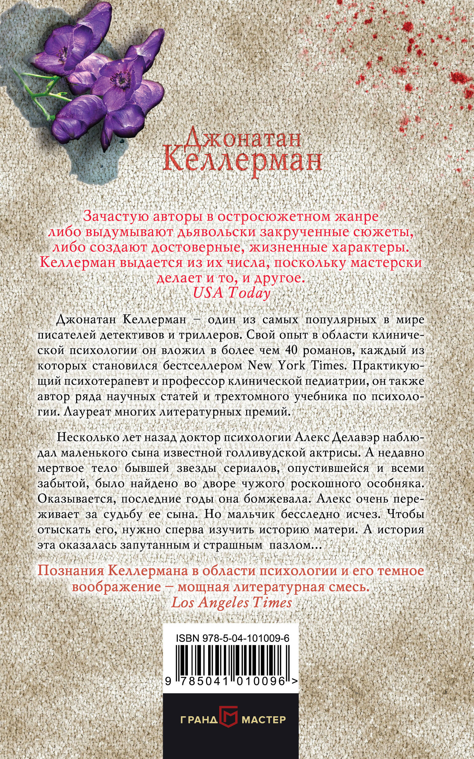 Бестселлер New York Times Эти психолог и коп - самый оригинальный детективный дуэт со времен Холмса и Ватсона. Джонатан Келлерман - один из самых популярных в мире писателей детективов и триллеров. Свой опыт в области клинической психологии он вложил в более чем 40 романов, каждый из которых становился бестселлером New York Times. Практикующий психотерапевт и профессор клинической педиатрии, он также автор ряда научных статей и трехтомного учебника по психологии. Лауреат многих литературных премий. Несколько лет назад доктор Алекс Делавэр наблюдал маленького сына известной голливудской актрисы. А недавно мертвое тело бывшей звезды сериалов, опустившейся и всеми забытой, было найдено во дворе чужого роскошного особняка. Оказывается, последние годы она бомжевала. Алекс очень переживает за судьбу ее сына. Но мальчик бесследно исчез. Чтобы отыскать его, нужно сперва изучить историю матери. А история эта оказалась запутанным и страшным паззлом…| Издательство | ООО "Издательство "Эксмо" |